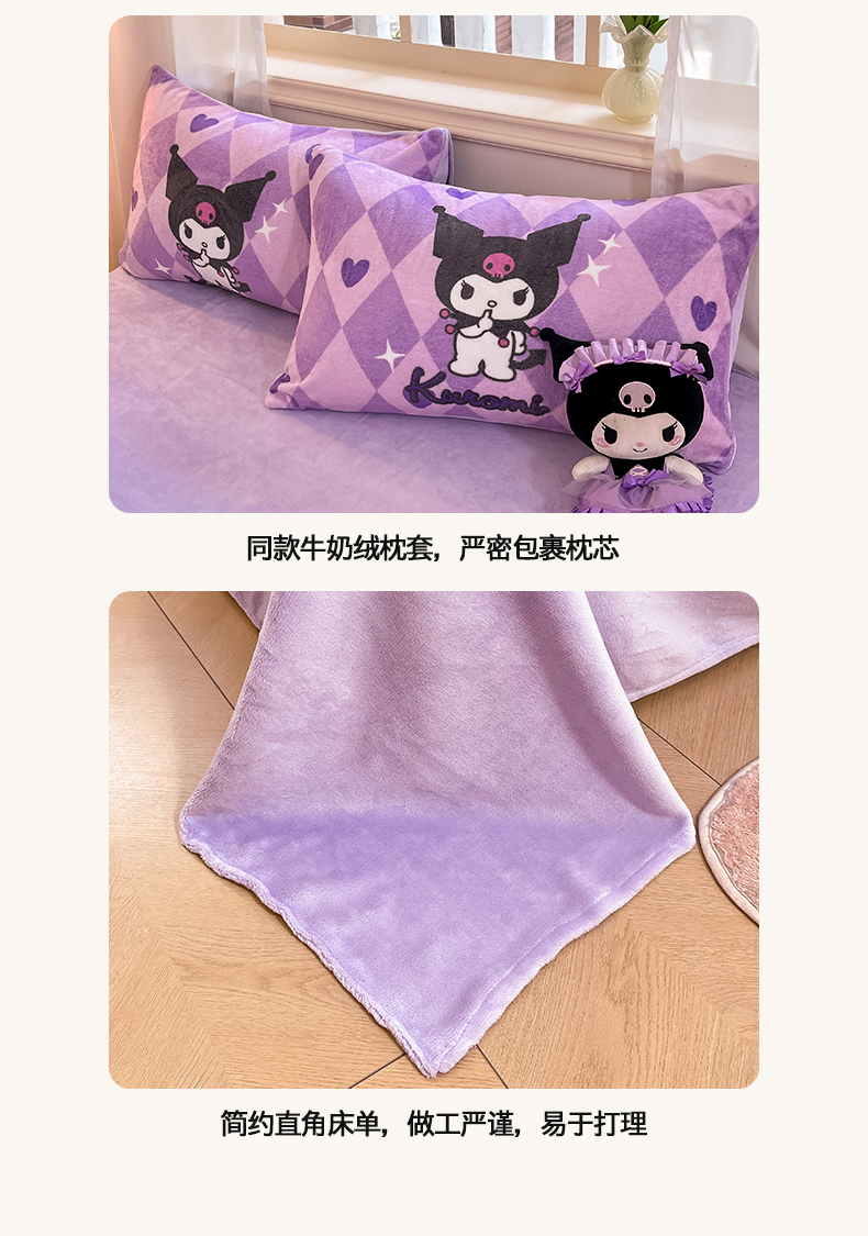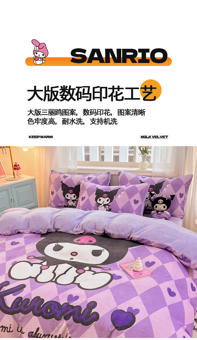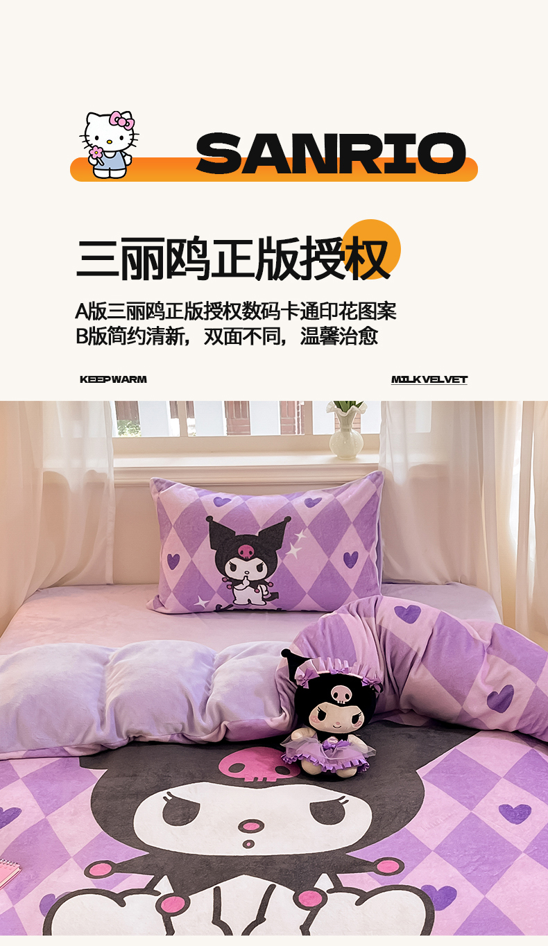 当前位置: 91家纺网 > 商品网购 > 床品套件 > 四件套 > 牛奶绒四件套 > 金爱家 2025新款正版三丽鸥授权大版卡通平网数码印花加厚高克重牛奶绒系列四件套-第一批 绒大版-R桃心美美库洛米