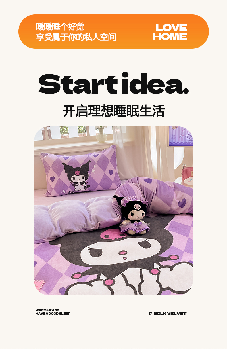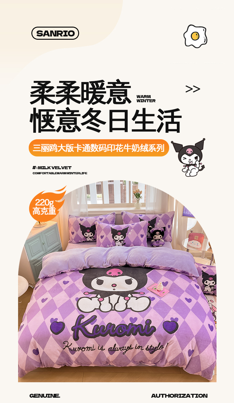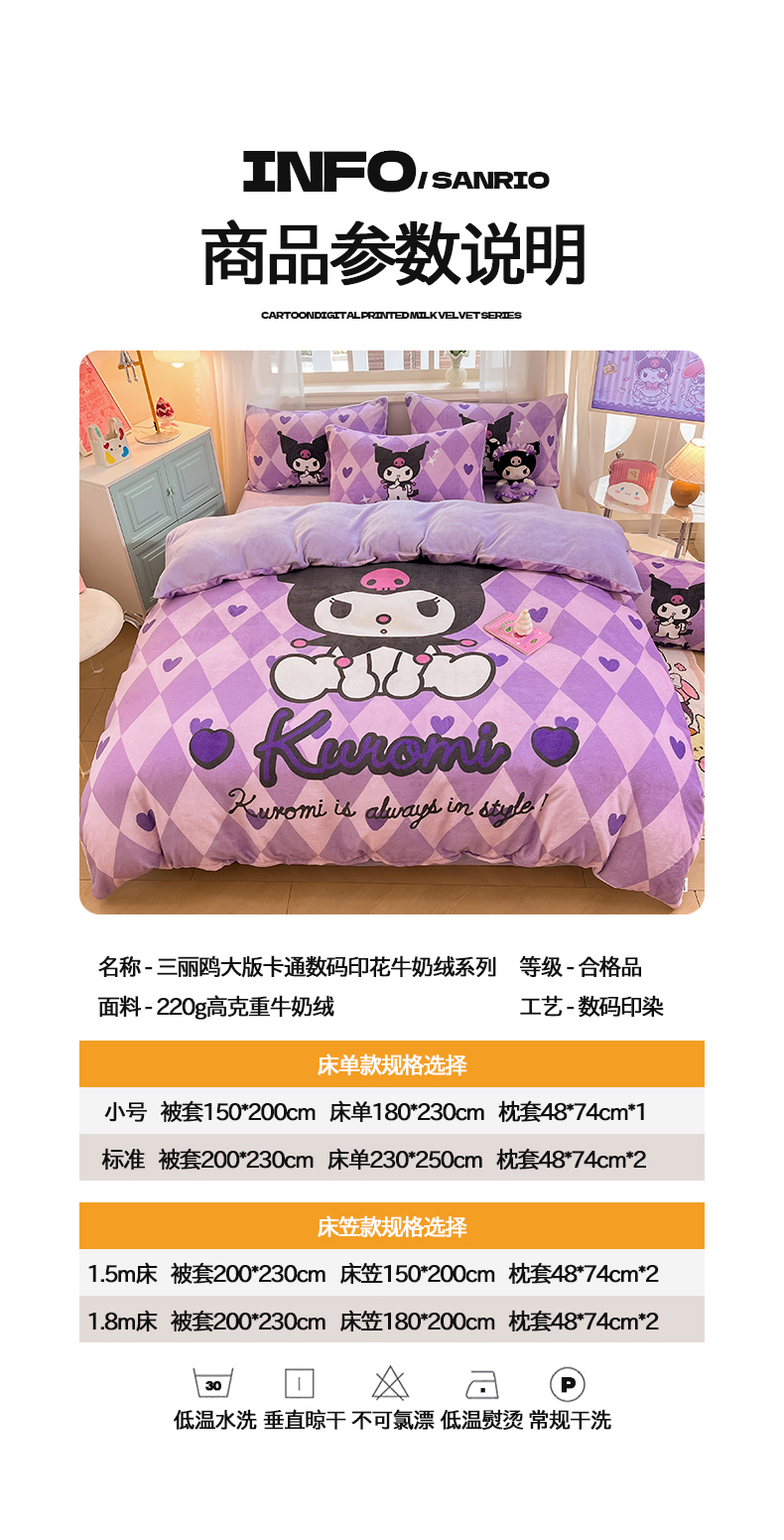 当前位置: 91家纺网 > 商品网购 > 床品套件 > 四件套 > 牛奶绒四件套 > 金爱家 2025新款正版三丽鸥授权大版卡通平网数码印花加厚高克重牛奶绒系列四件套-第一批 绒大版-R桃心美美库洛米