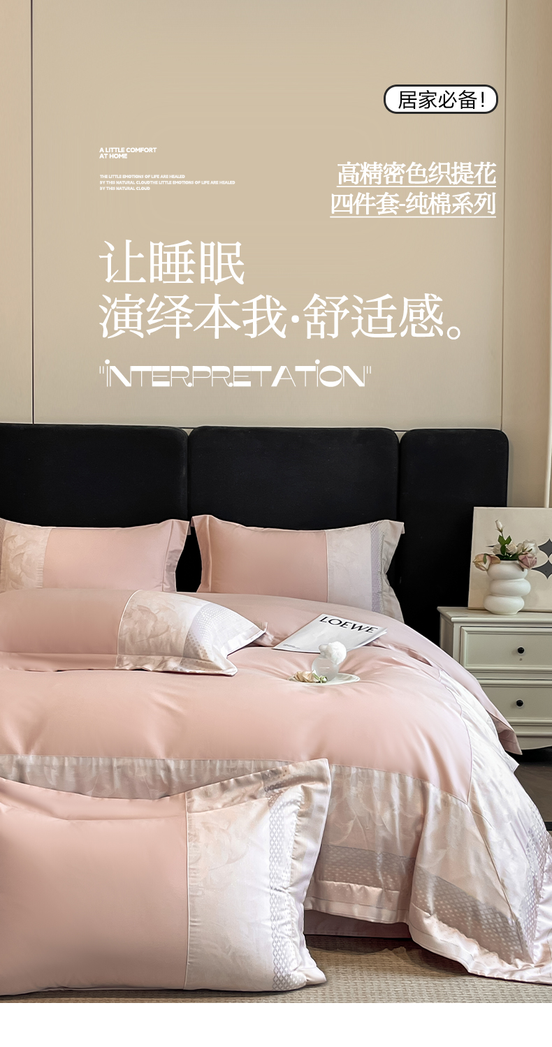 商品名称:博纳家纺 2025新款多色色织提花宽边高级简奢款纯棉四件套-山木花亭 山木花亭-粉玉