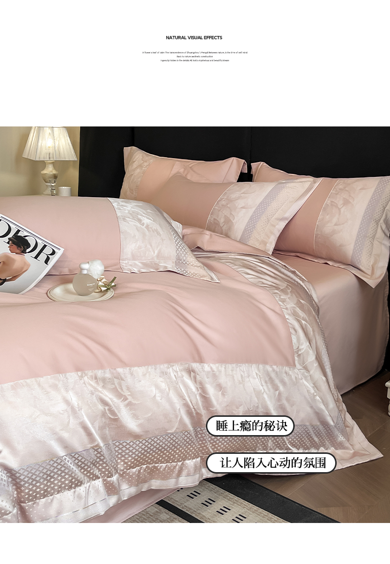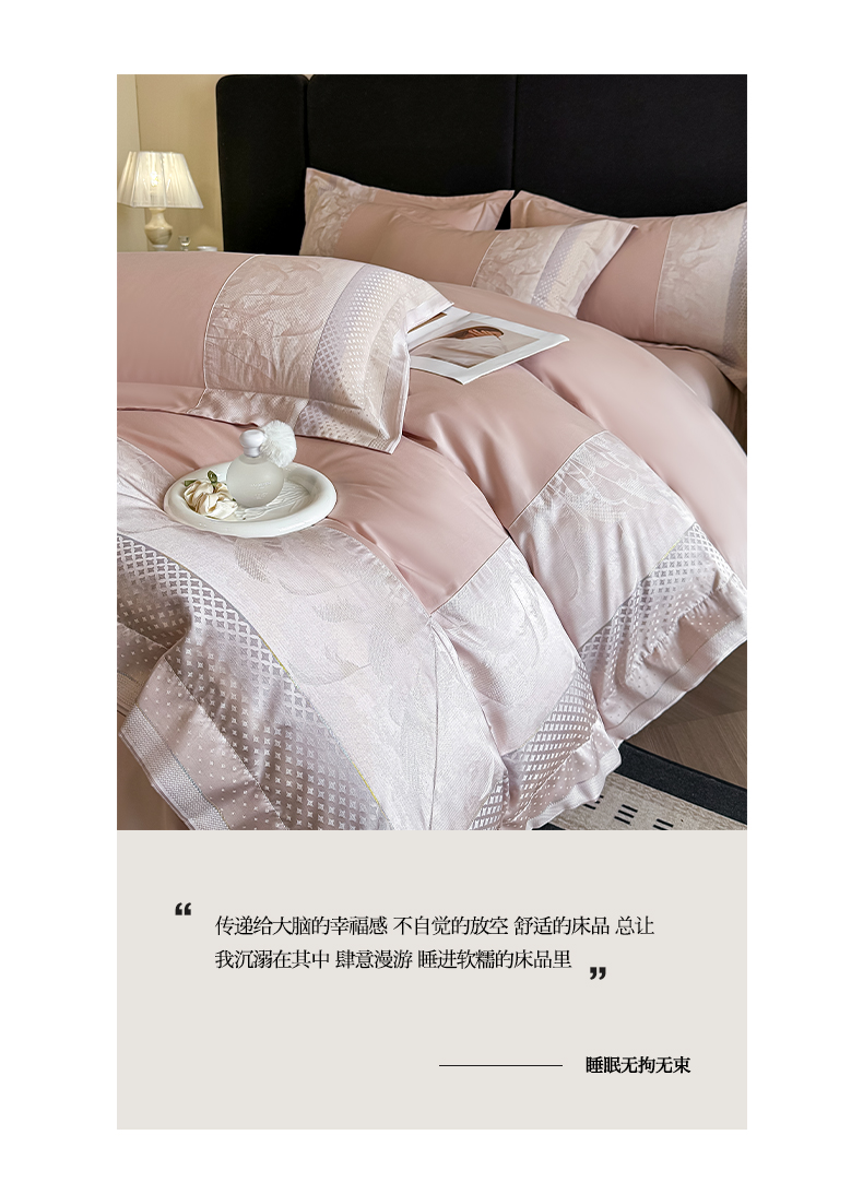 博纳家纺 2025新款多色色织提花宽边高级简奢款纯棉四件套-山木花亭 山木花亭-粉玉