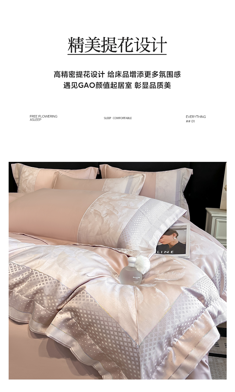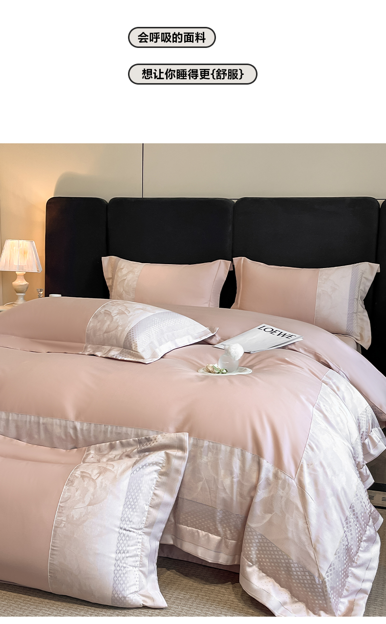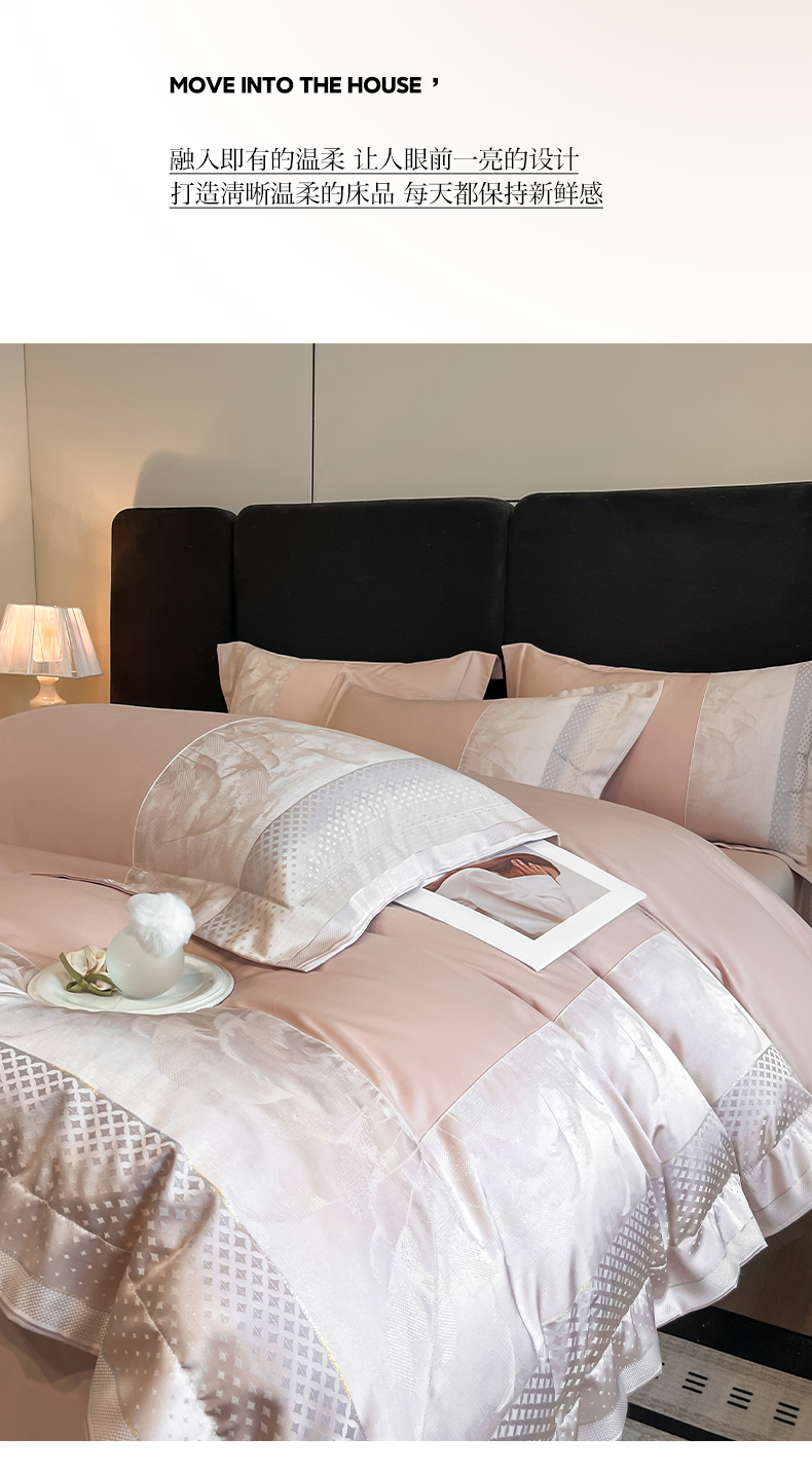 (总)博纳家纺 2025新款镂空大宽边拼角高级简奢款亲肤棉四件套-山水提花,繁星蓝,粉玉,高级灰,香槟,象牙白