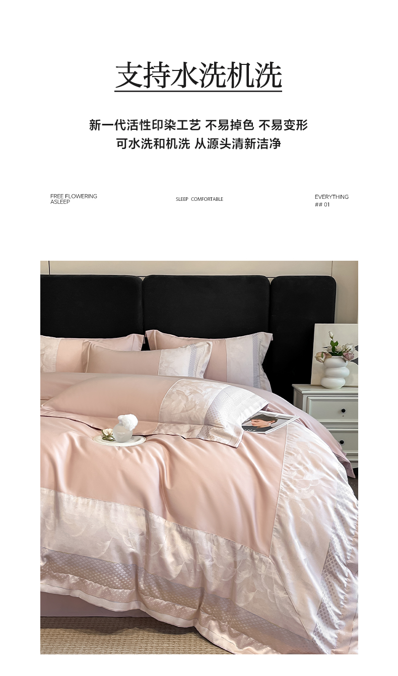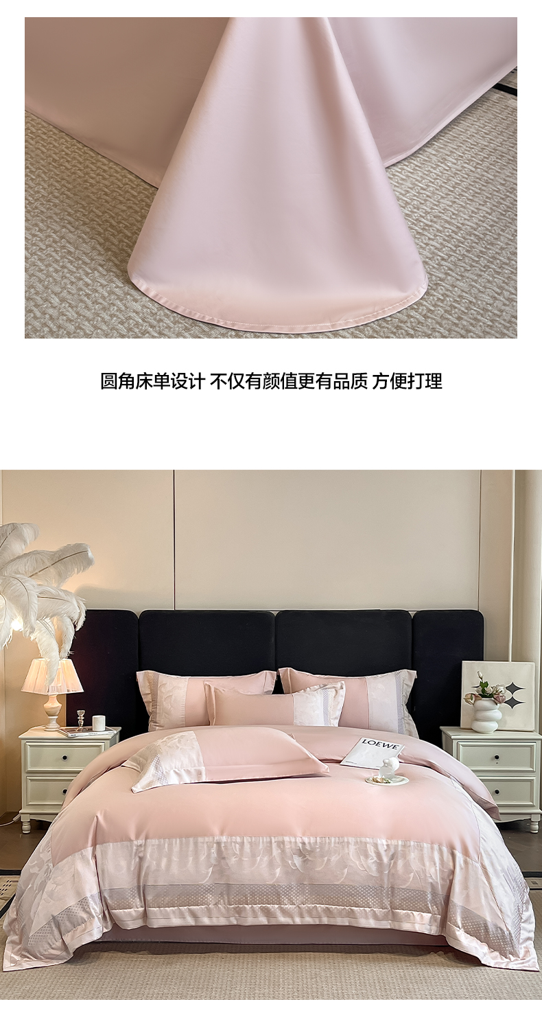 (总)博纳家纺 2026新款高端色织提花拼角绣花宽边亲肤棉四件套海韵系列,海韵-粉玉,海韵-绅士灰,海韵-香槟