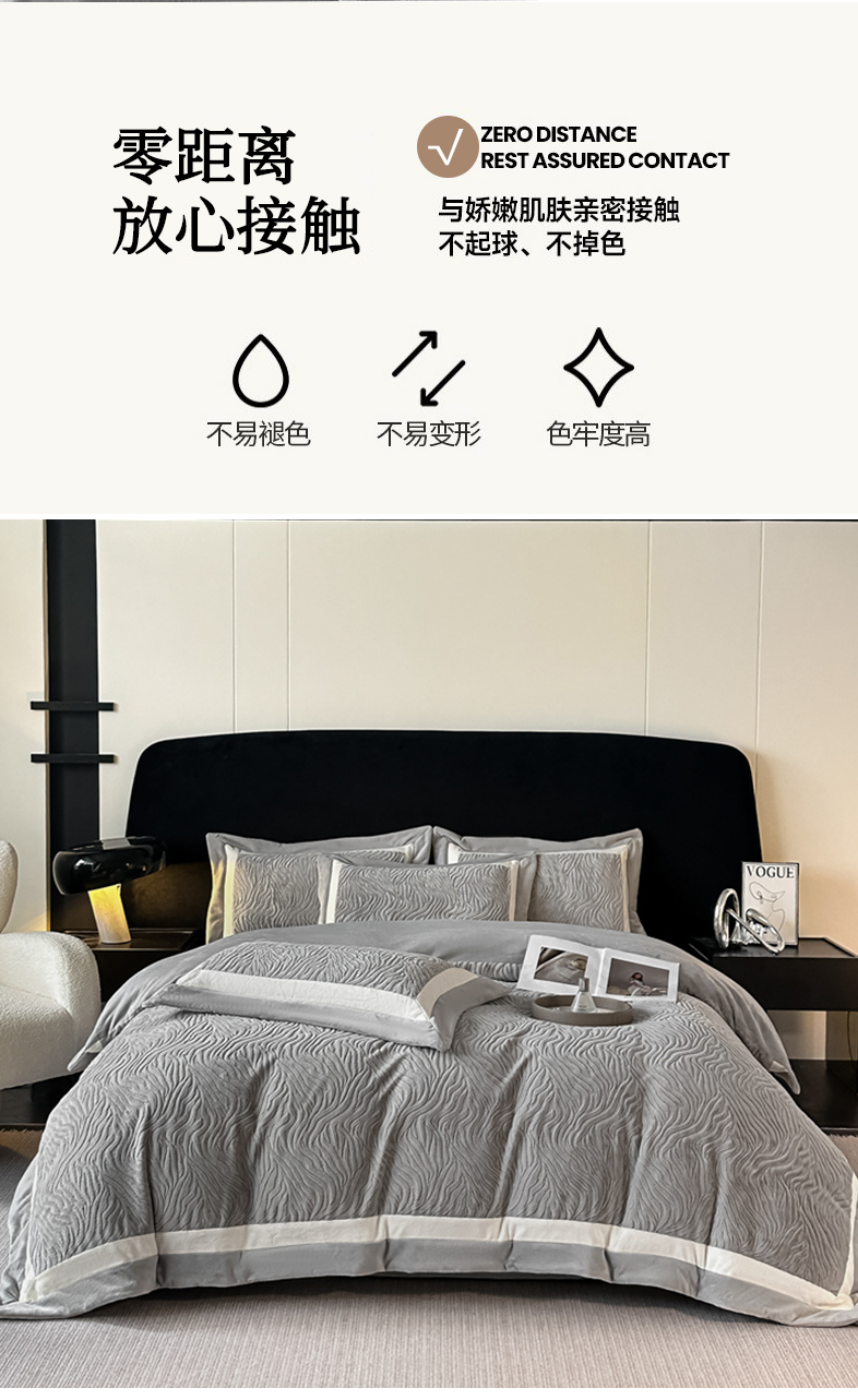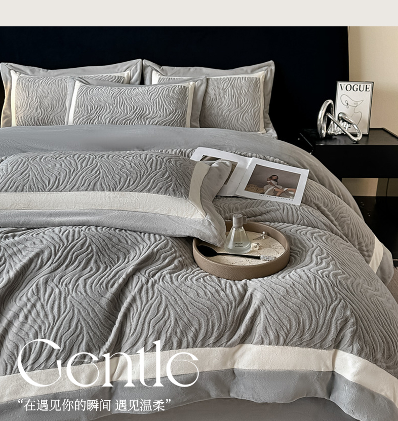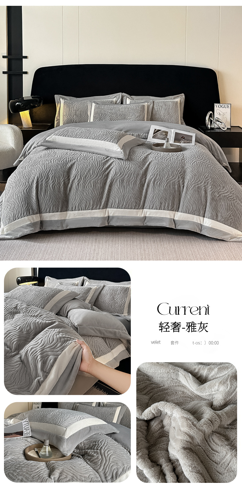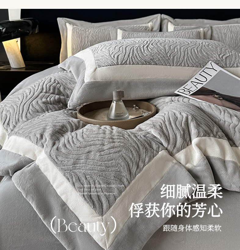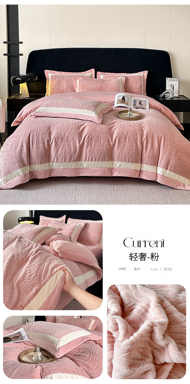 (总)锦铭源家纺 2025新款雪貂绒烂花75D全消光超柔樱花绒双拼角四件套牛奶绒四件套【有买家秀】,轻奢-粉,轻奢-奶白,轻奢-浅绿,轻奢-雅灰