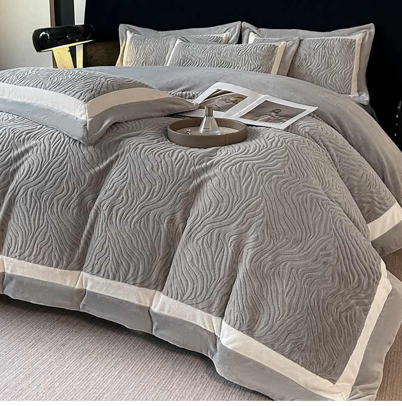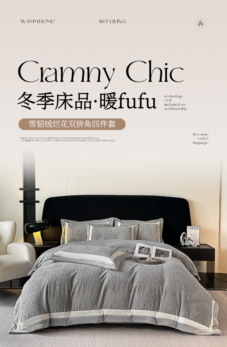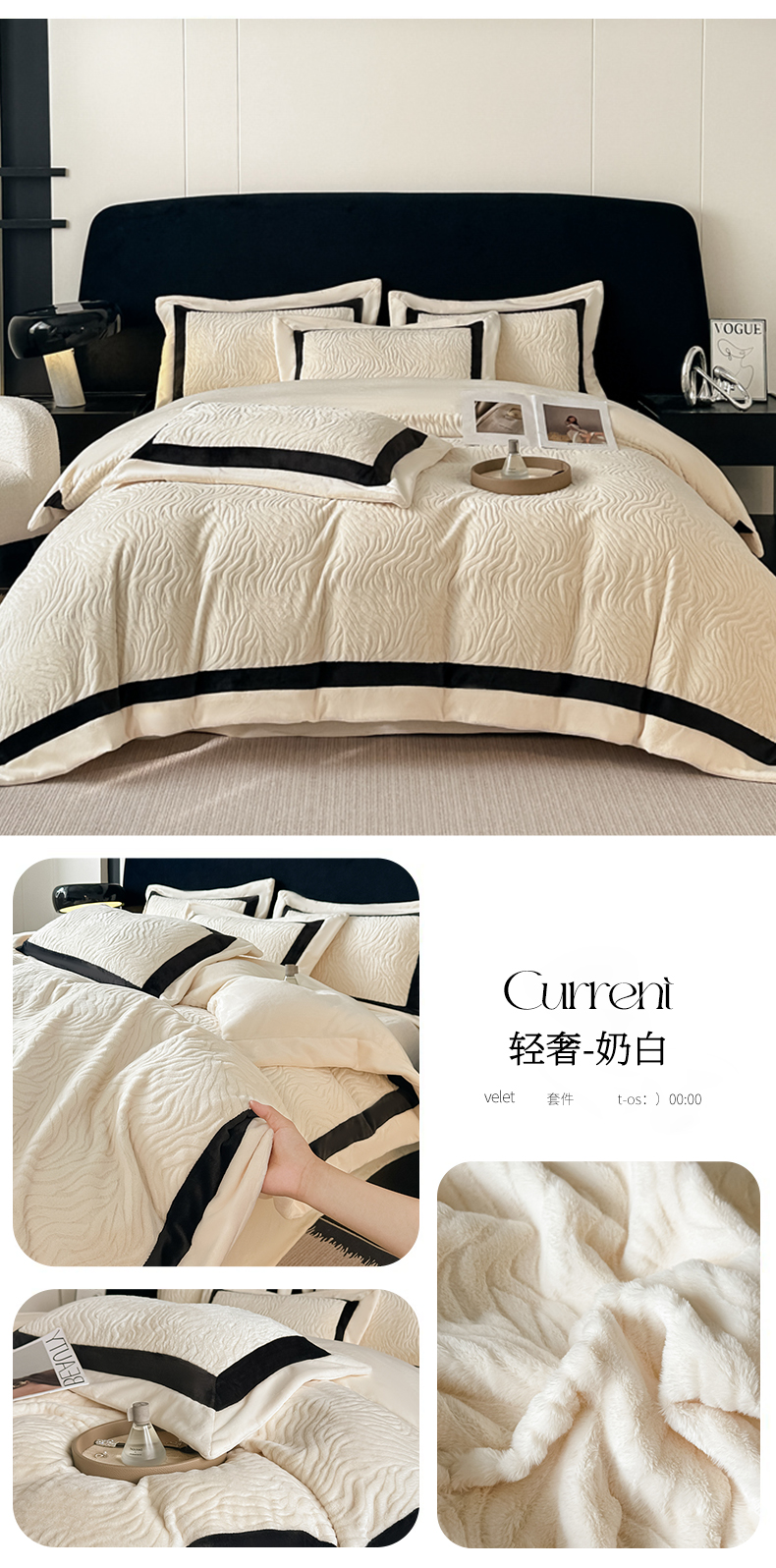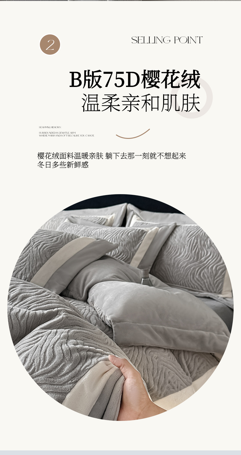 商品名称:(总)锦铭源家纺 2025新款雪貂绒烂花75D全消光超柔樱花绒双拼角四件套牛奶绒四件套【有买家秀】