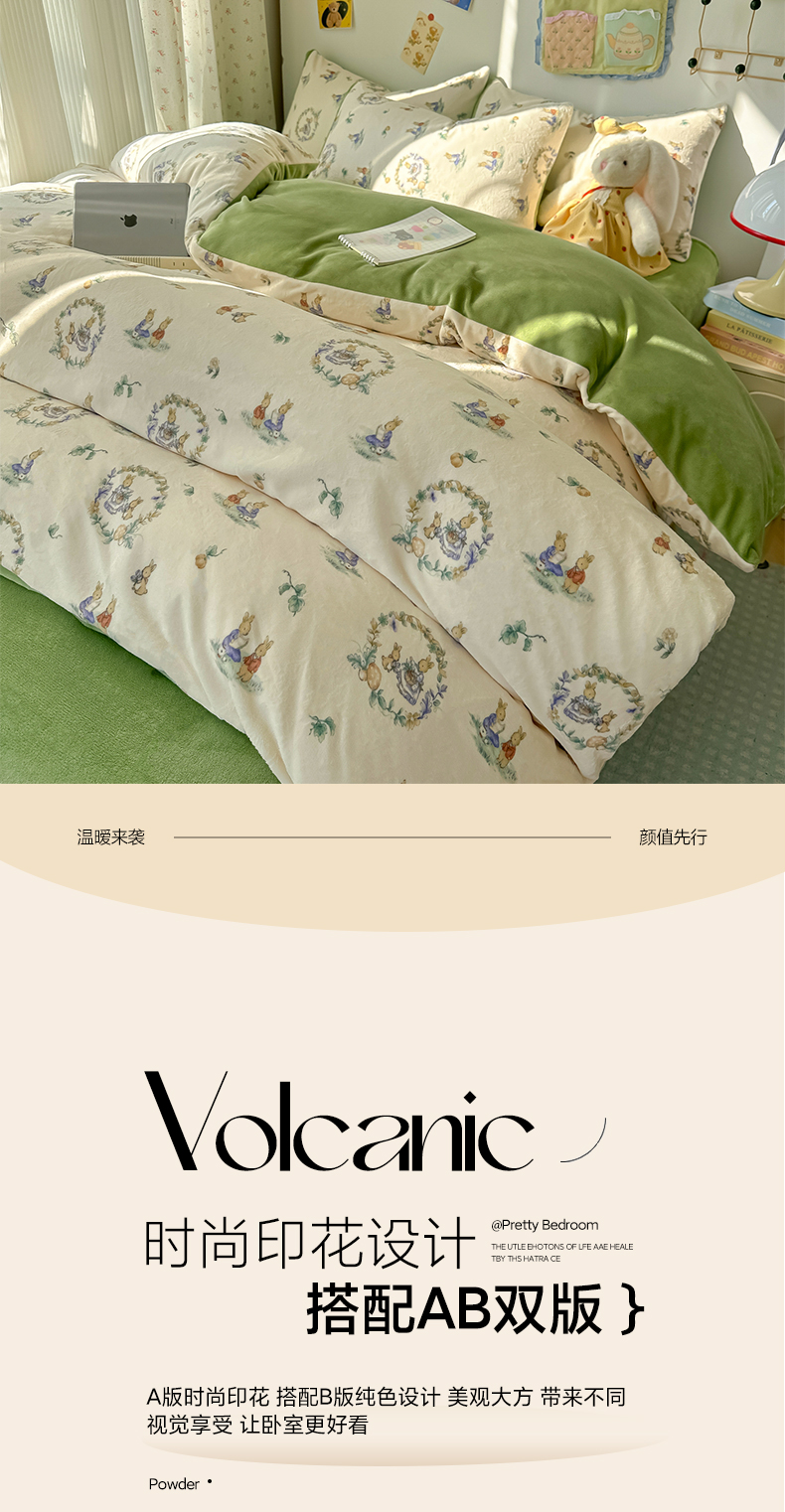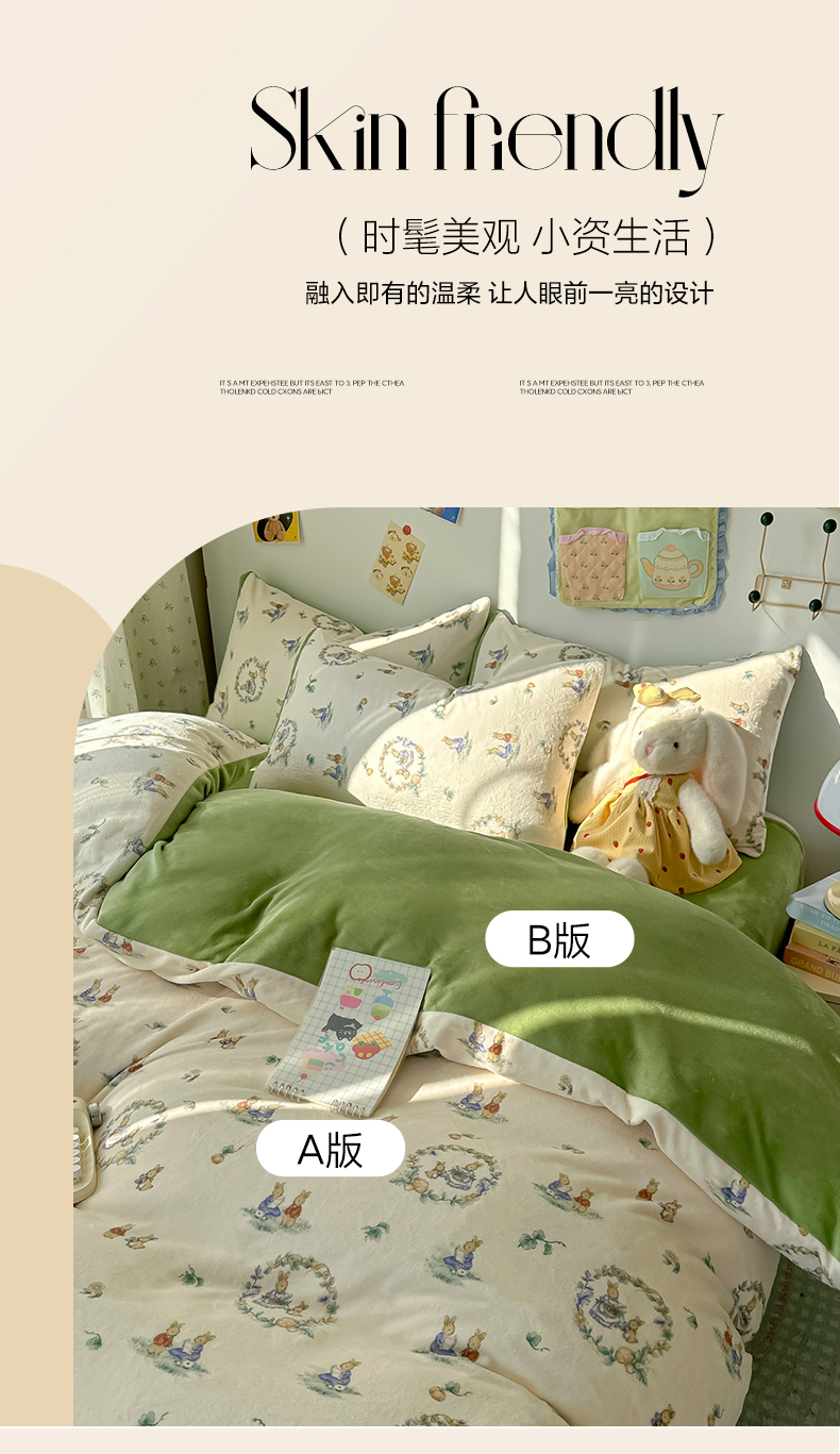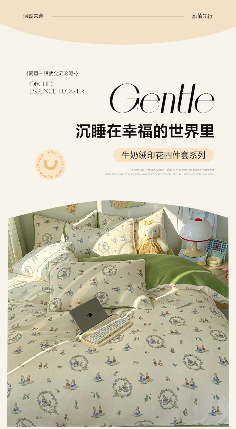 当前位置: 91家纺网 > 商品网购 > 床品套件 > 四件套 > 牛奶绒四件套 > 韩巢家纺 2025新款高克重牛奶绒四件套冬季绒床品被套床单三件套 小兔幻境