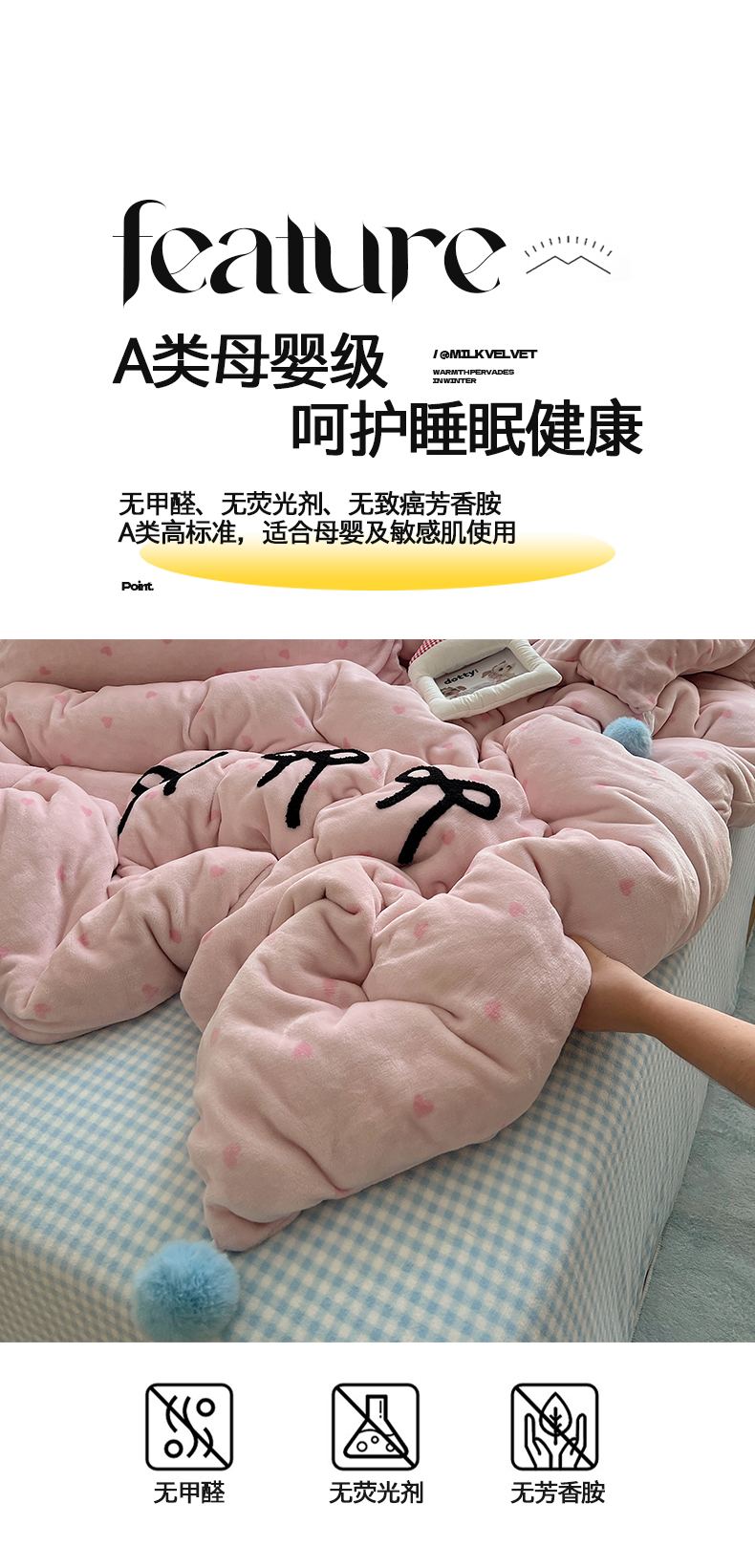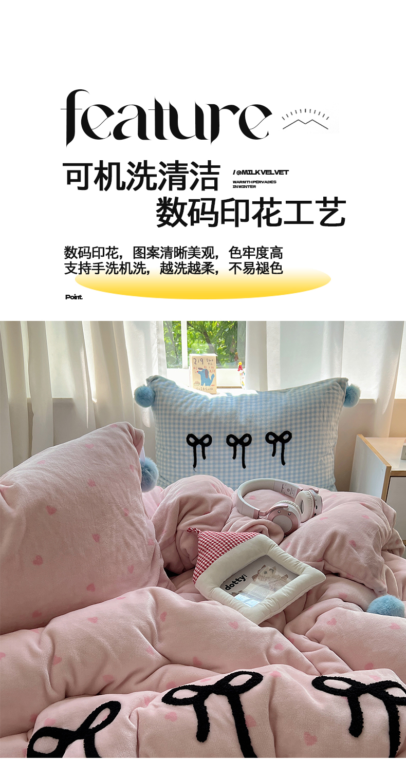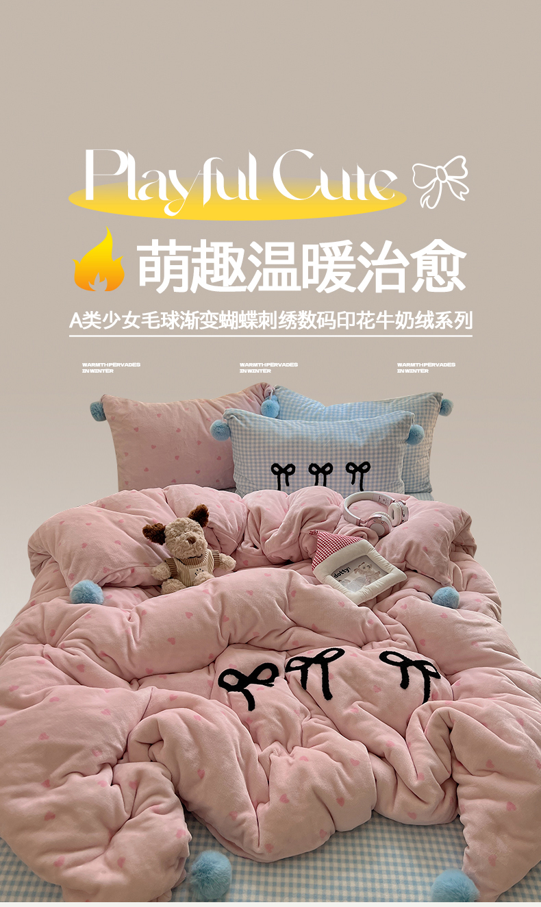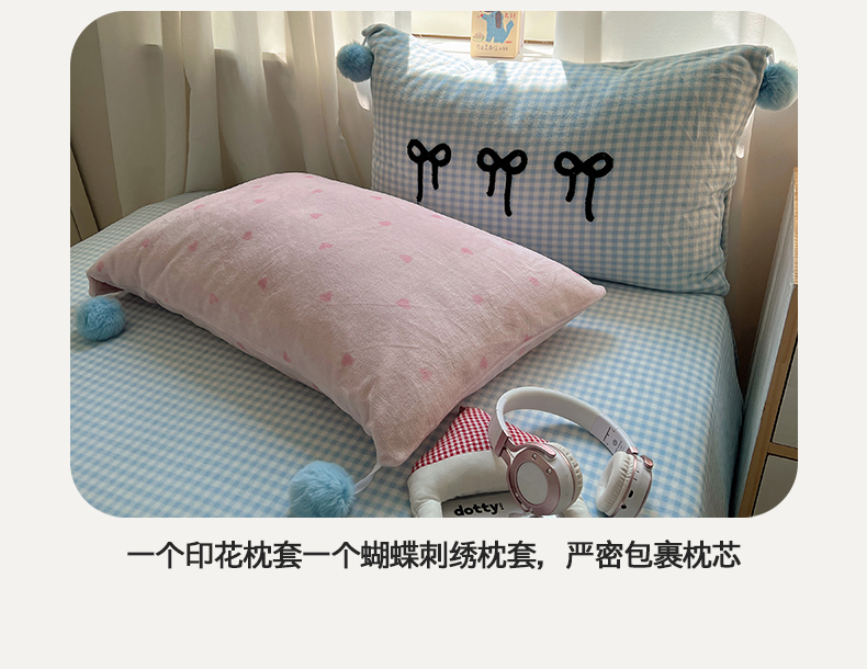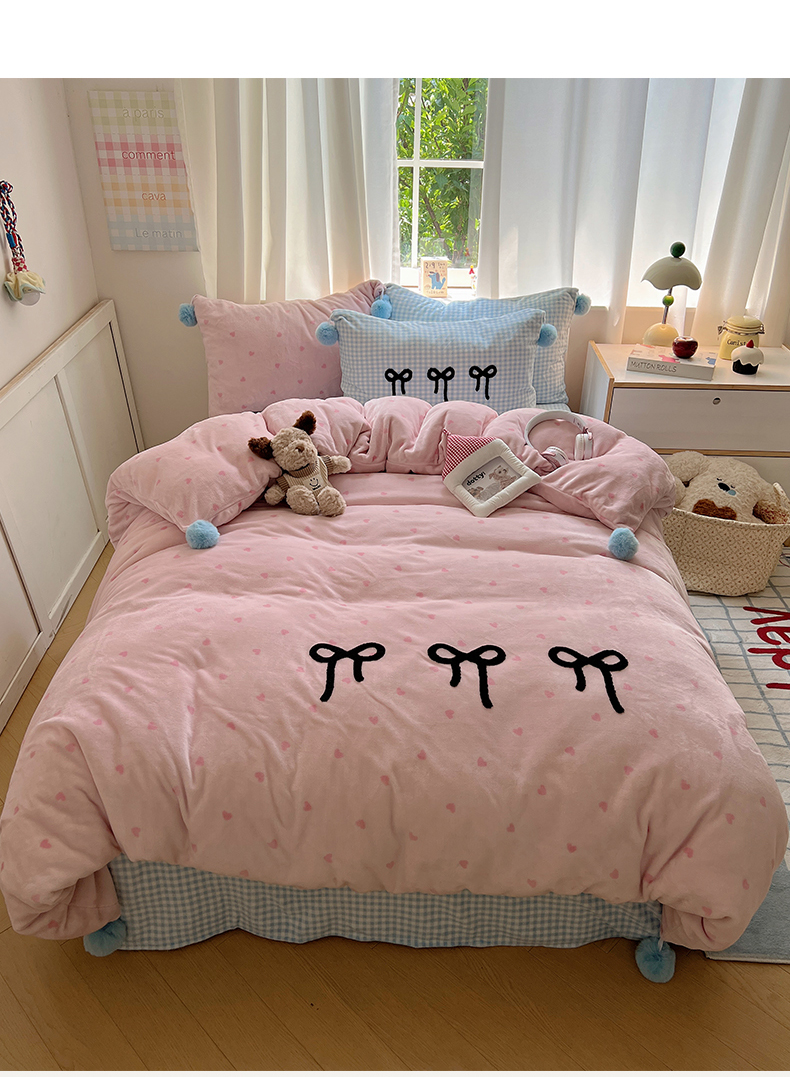 当前位置: 91家纺网 > 商品网购 > 床品套件 > 四件套 > 牛奶绒四件套 > 桃子家居 2025新款insA类少女甜心毛球混搭工艺蝴蝶结刺绣毛巾绣印花加厚牛奶绒四件套 绒毛球-蝴蝶结草莓蓝格