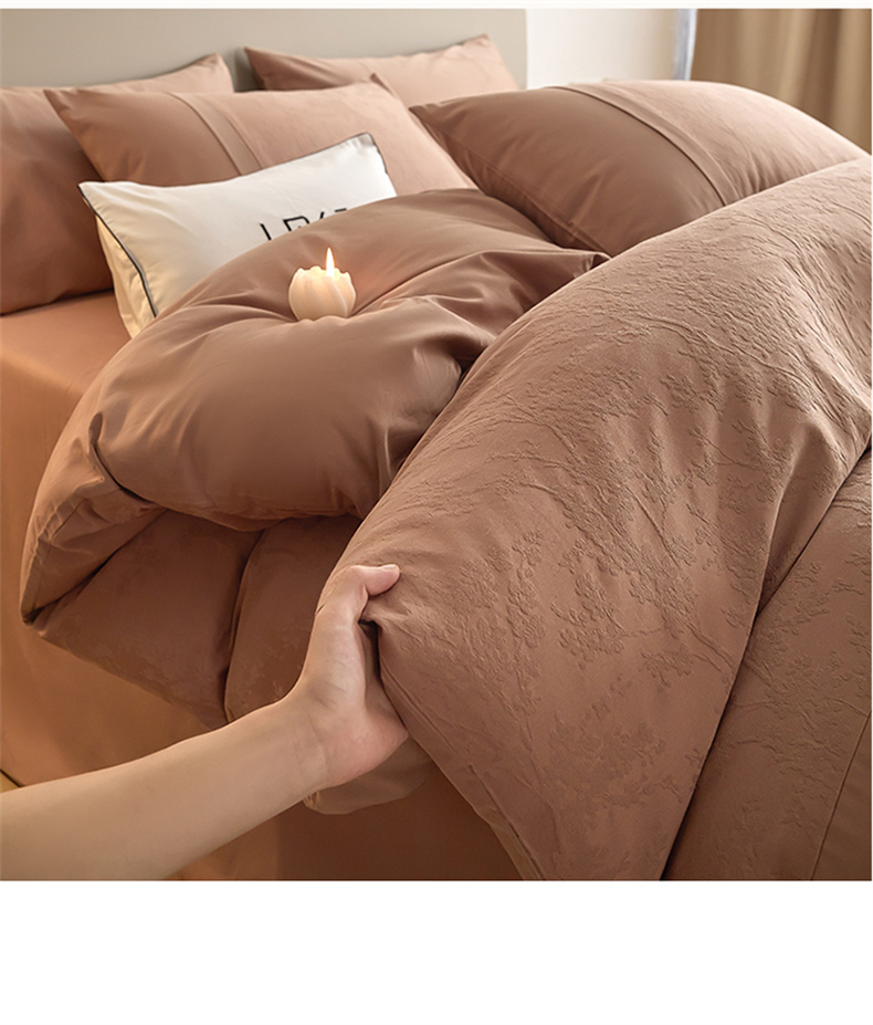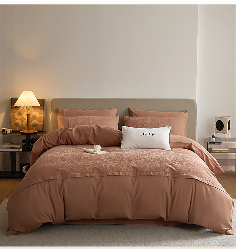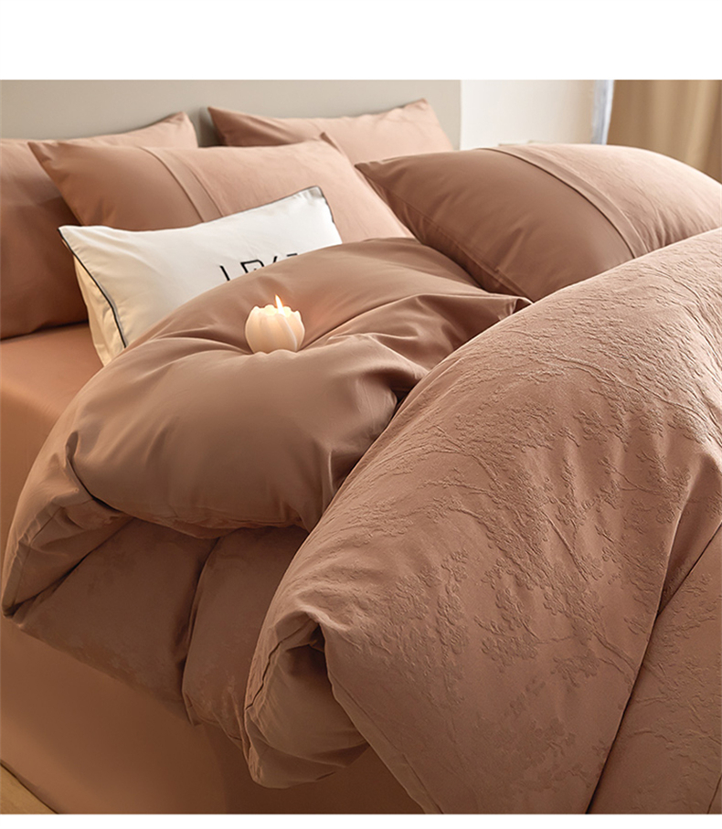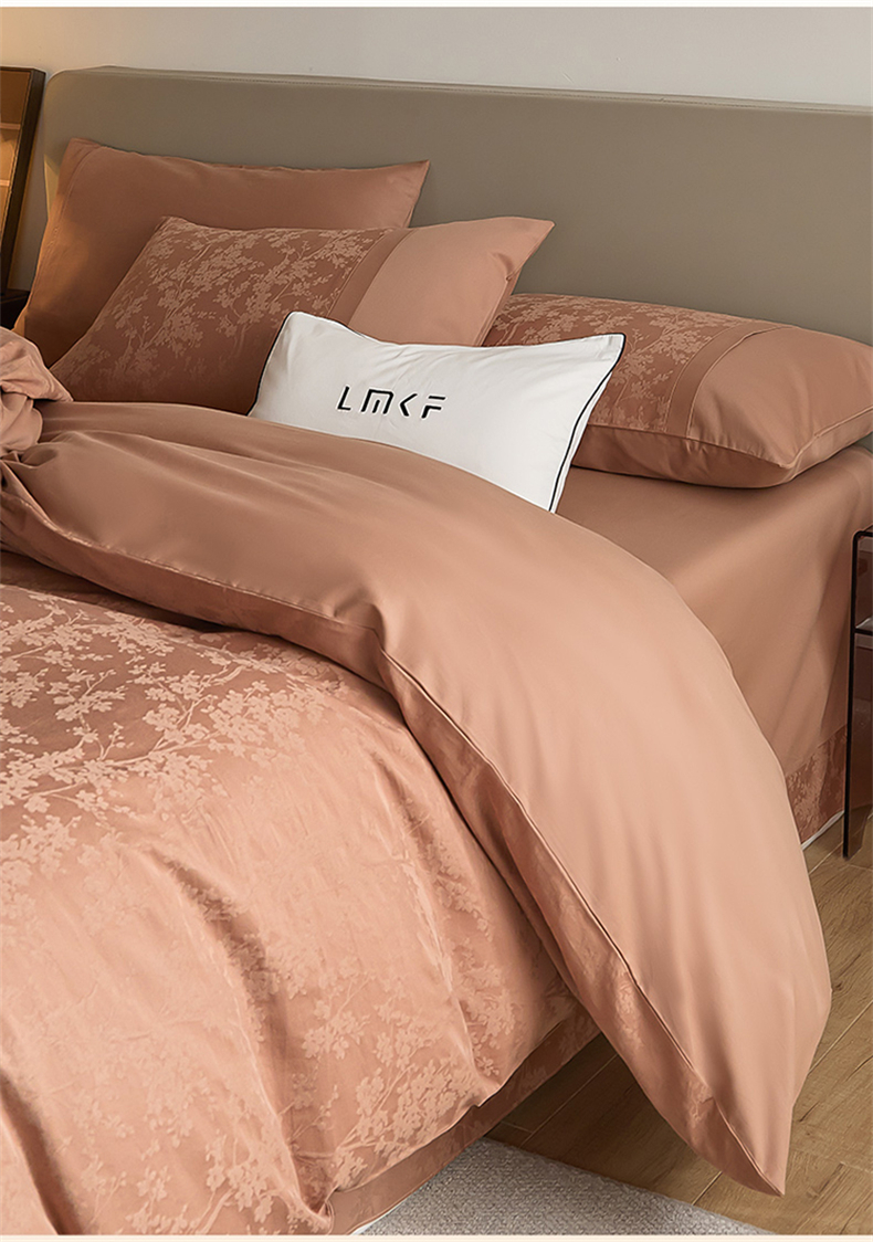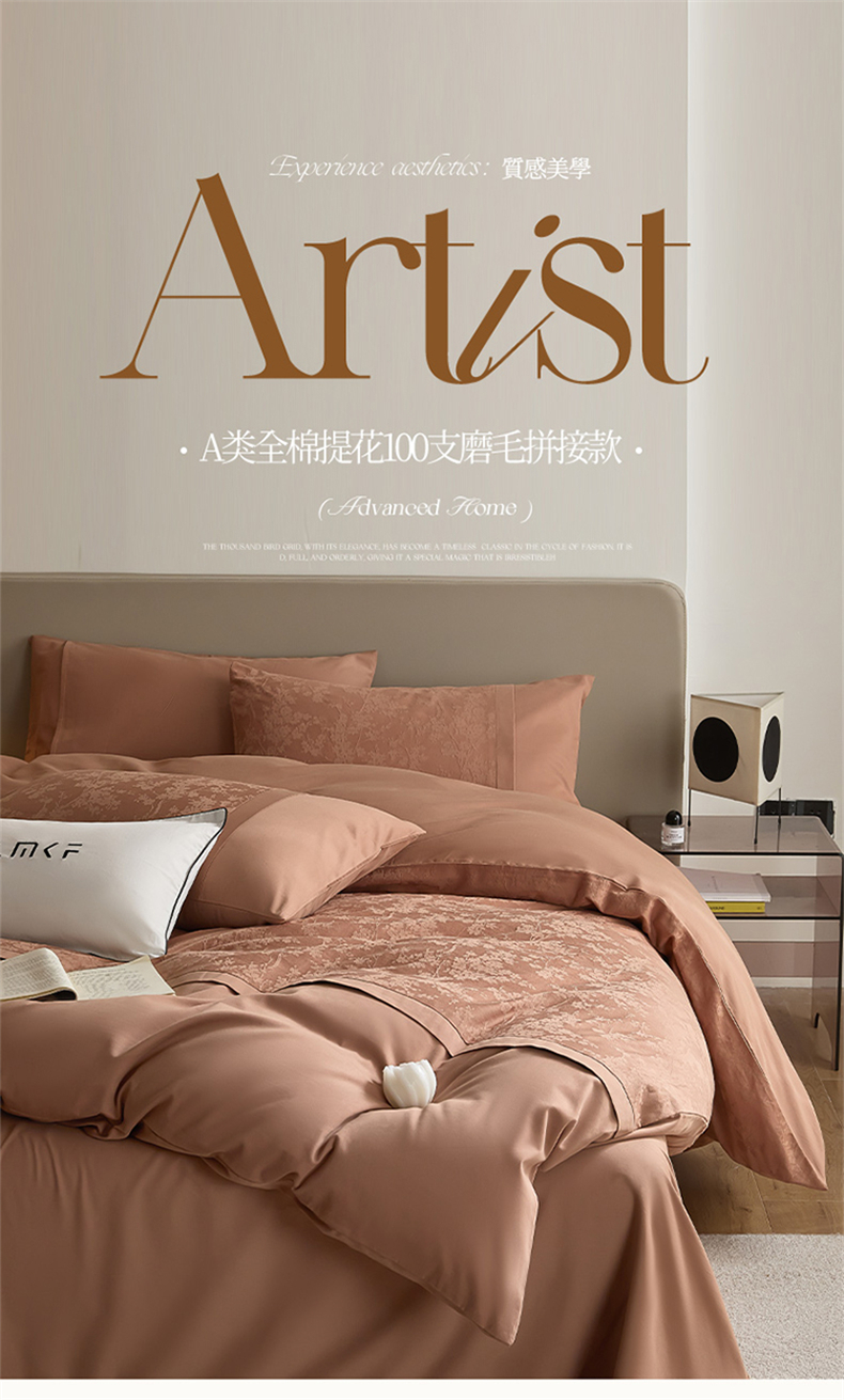 蓝米卡夫 2025秋冬-A类全棉亮面提花50S*50S双股磨毛拼接款(礼盒包装)提供买家秀 梦幻花园-深秋咖
