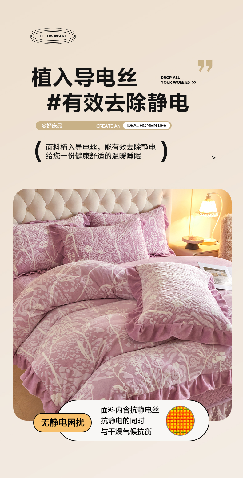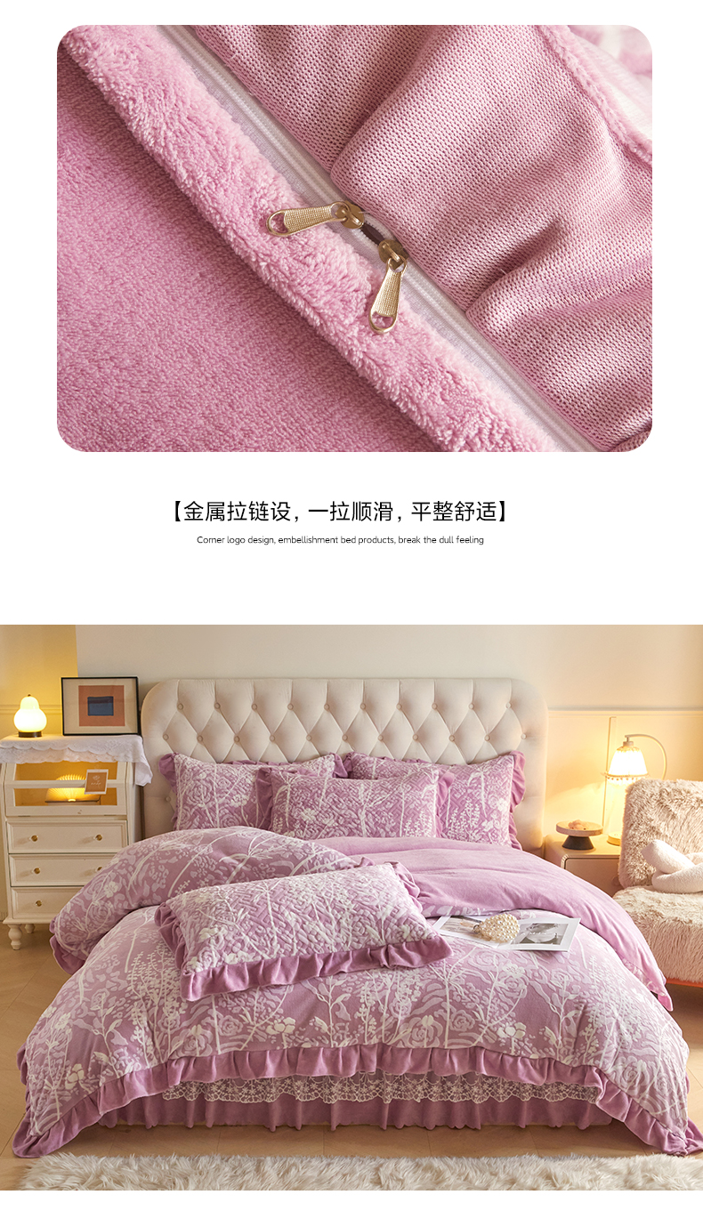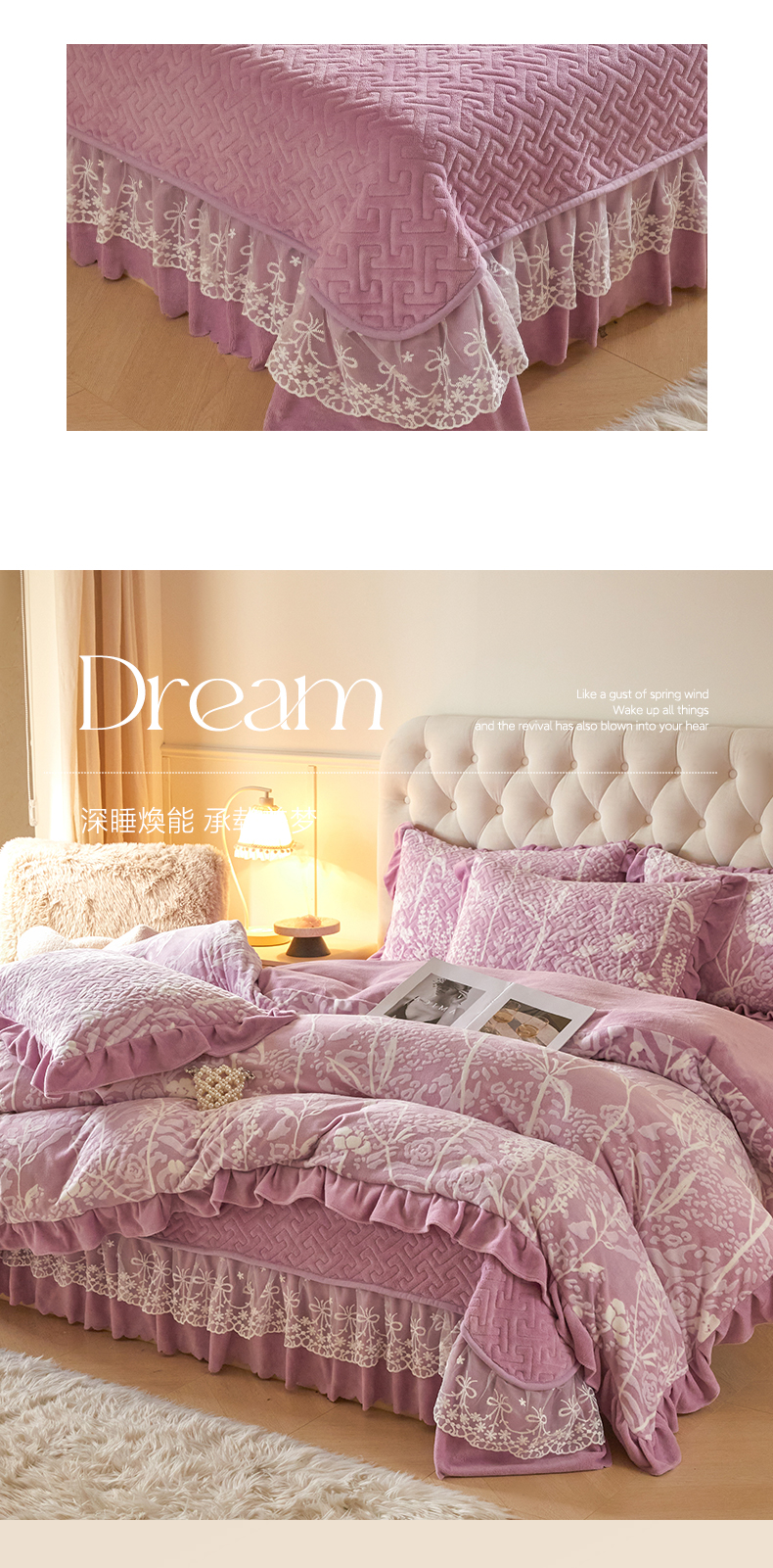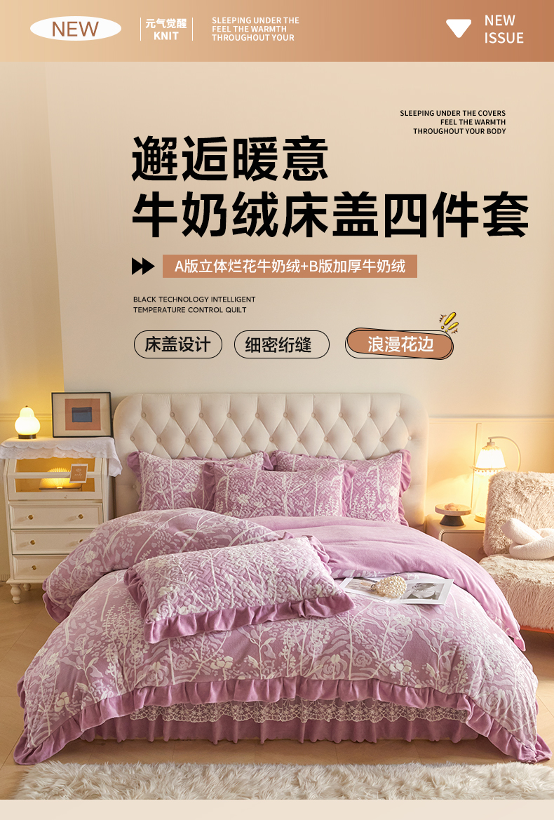 商品名称:畅畅家纺 2025新款11斤高克重新款韩版烂花牛奶绒冬季加厚床盖四件套系列 雾里看花-雪青紫