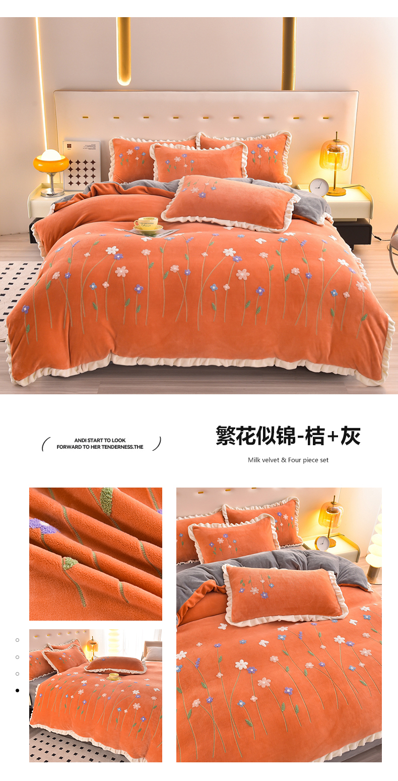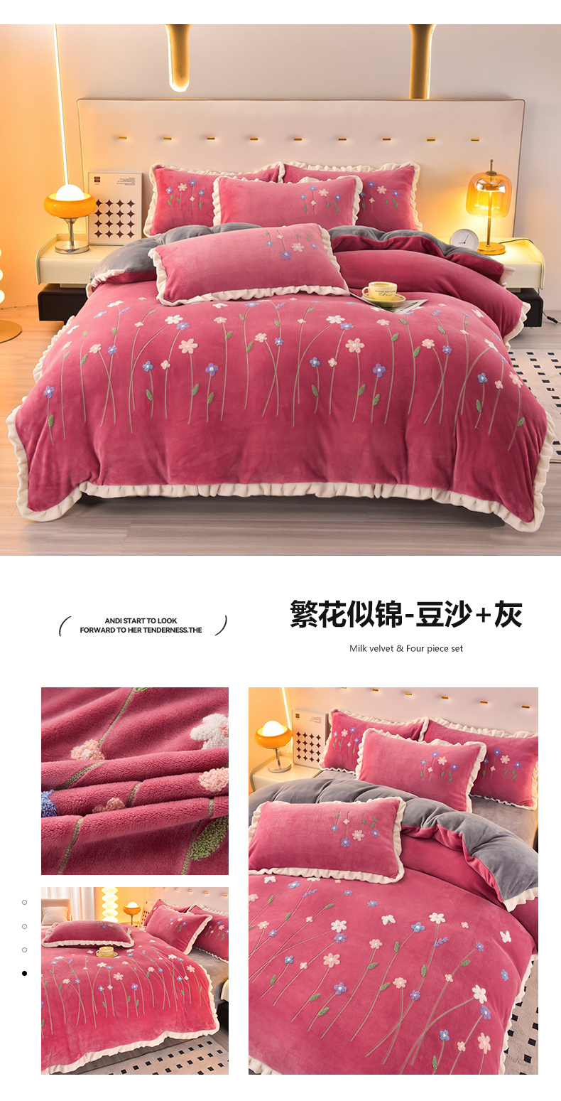 (总)畅畅家纺 2023牛奶绒刺绣花四件套金貂法莱宝宝水晶雪花绒四件套,花海 -高级灰,花海-草绿,花海-豆沙+灰,花海-粉+灰,花海-红豆沙,花海-湖蓝,花海-湖蓝+灰,花海-桔+灰,花海-桔色,花海-绿+灰,花海-奶白+粉,花海-樱花粉,花海-紫,花海-紫+灰