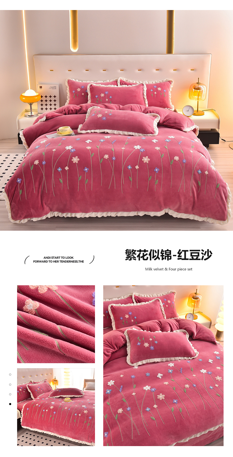 (总)畅畅2024新款加厚韩版花卉牛奶绒刺绣花四件套婴儿兔毛绒繁花似锦,繁花似锦-草绿,繁花似锦-草绿+灰,繁花似锦-豆沙+灰,繁花似锦-粉+灰,繁花似锦-高级灰,繁花似锦-红豆沙,繁花似锦-湖蓝,繁花似锦-湖蓝+灰,繁花似锦-桔+灰,繁花似锦-奶白+粉,繁花似锦-樱桃粉