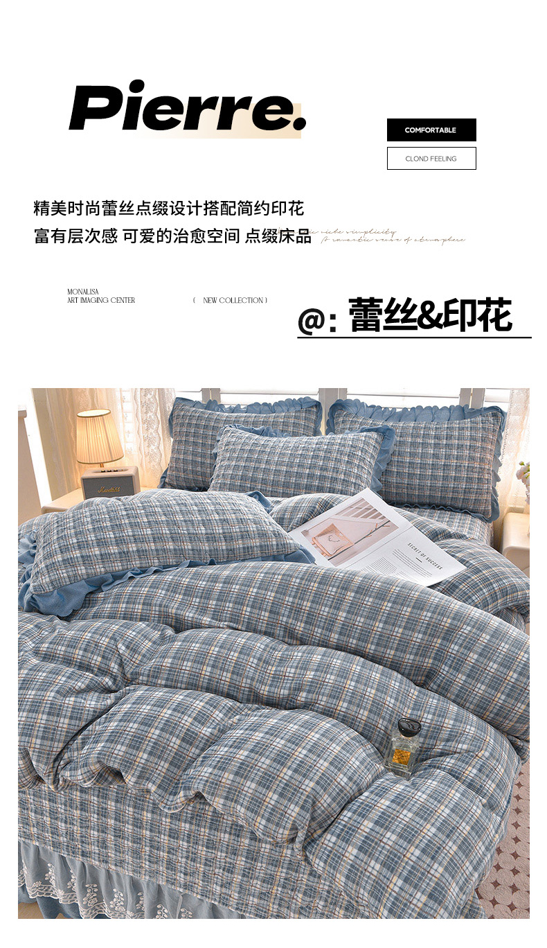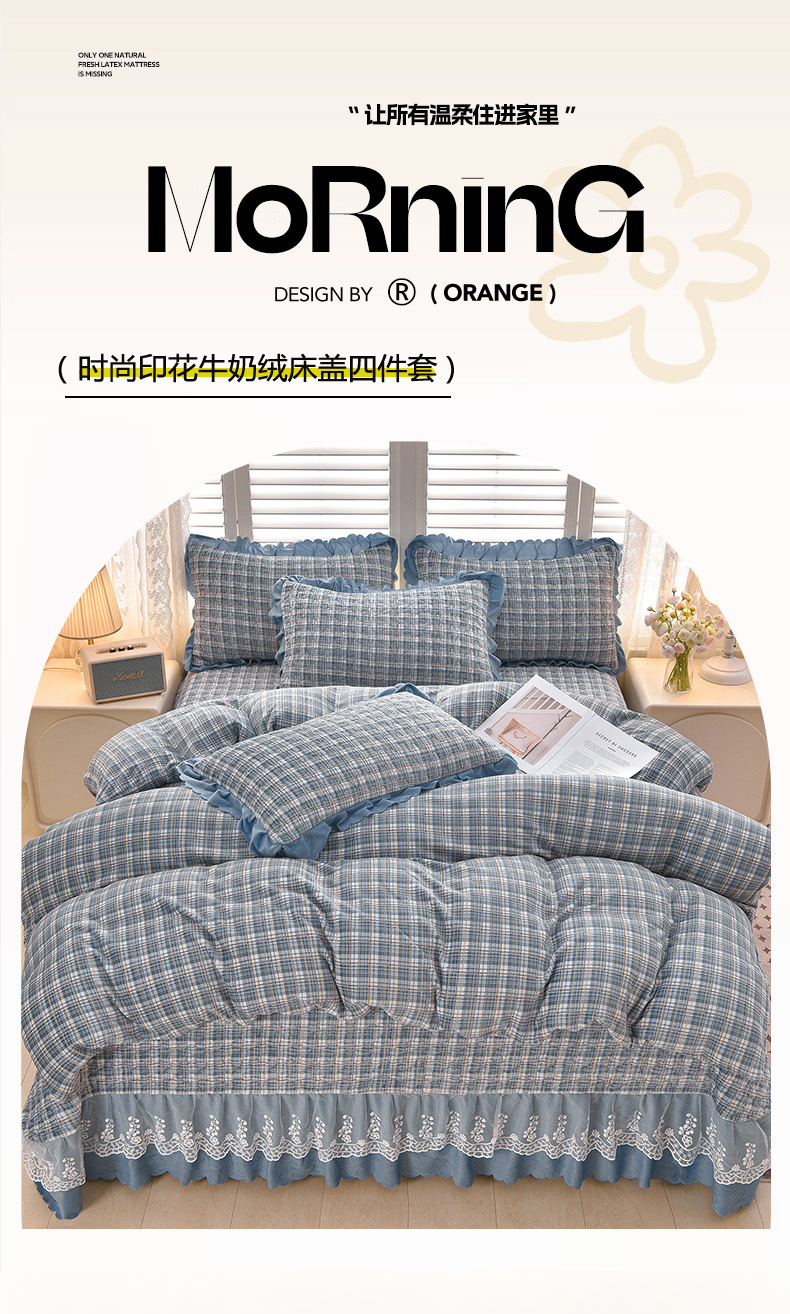 • 91家纺网 家纺一手货源 找家纺 艺慕家纺 2025新款时尚印花牛奶绒床盖四件套 格韵