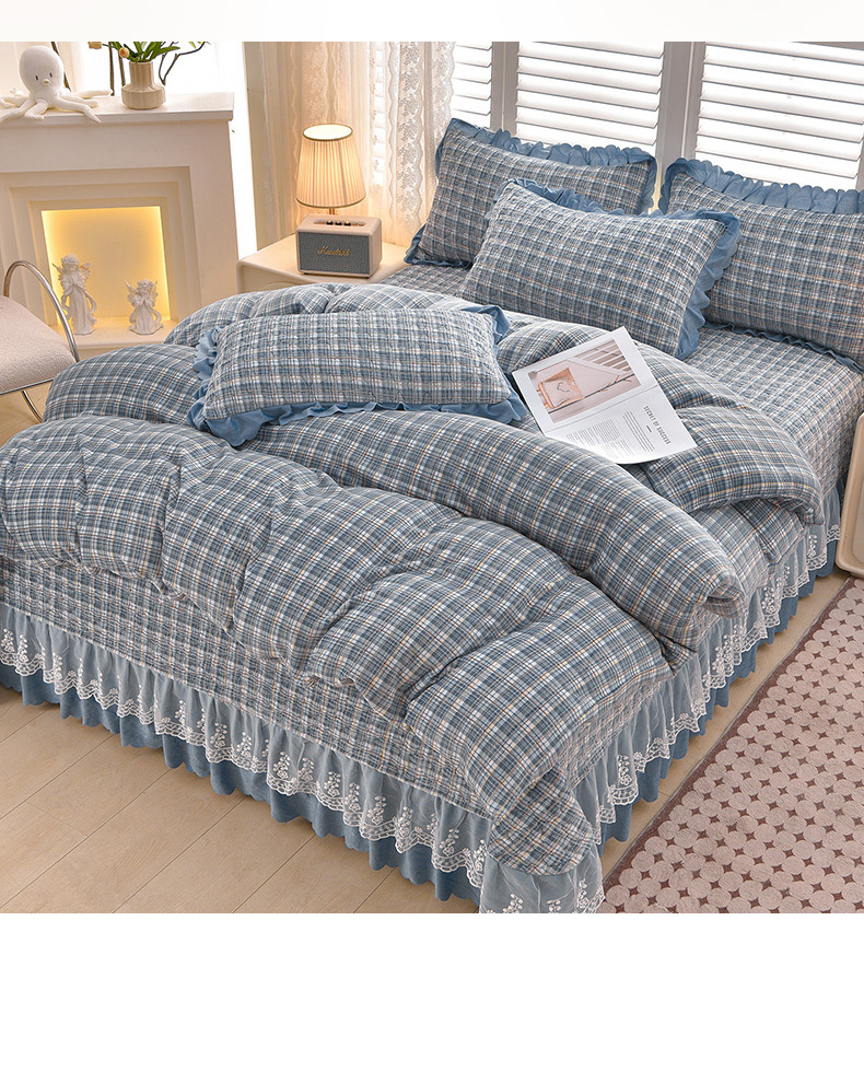 艺慕家纺 2025新款时尚印花牛奶绒床盖四件套 格韵