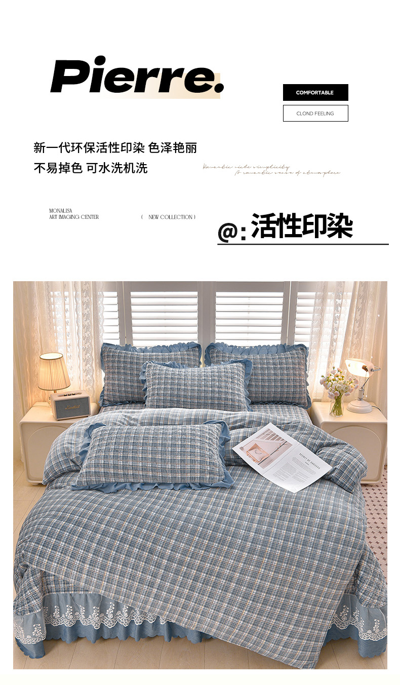 (总)艺慕家纺 2025新款水洗棉麻双层纱床盖四件套,太阳花绿,心动绿,春意,枫叶,粉色玫瑰,红豆,花丛兔,萌小兔,郁金香紫,青花瓷,夕颜,屋顶花园,夏日仙草