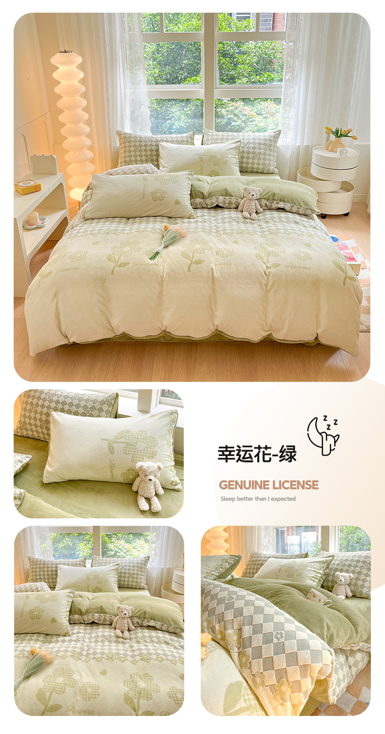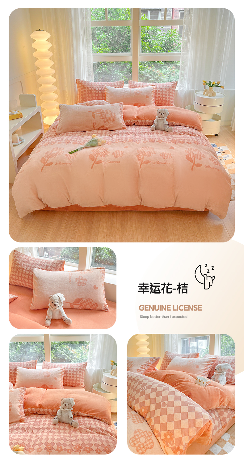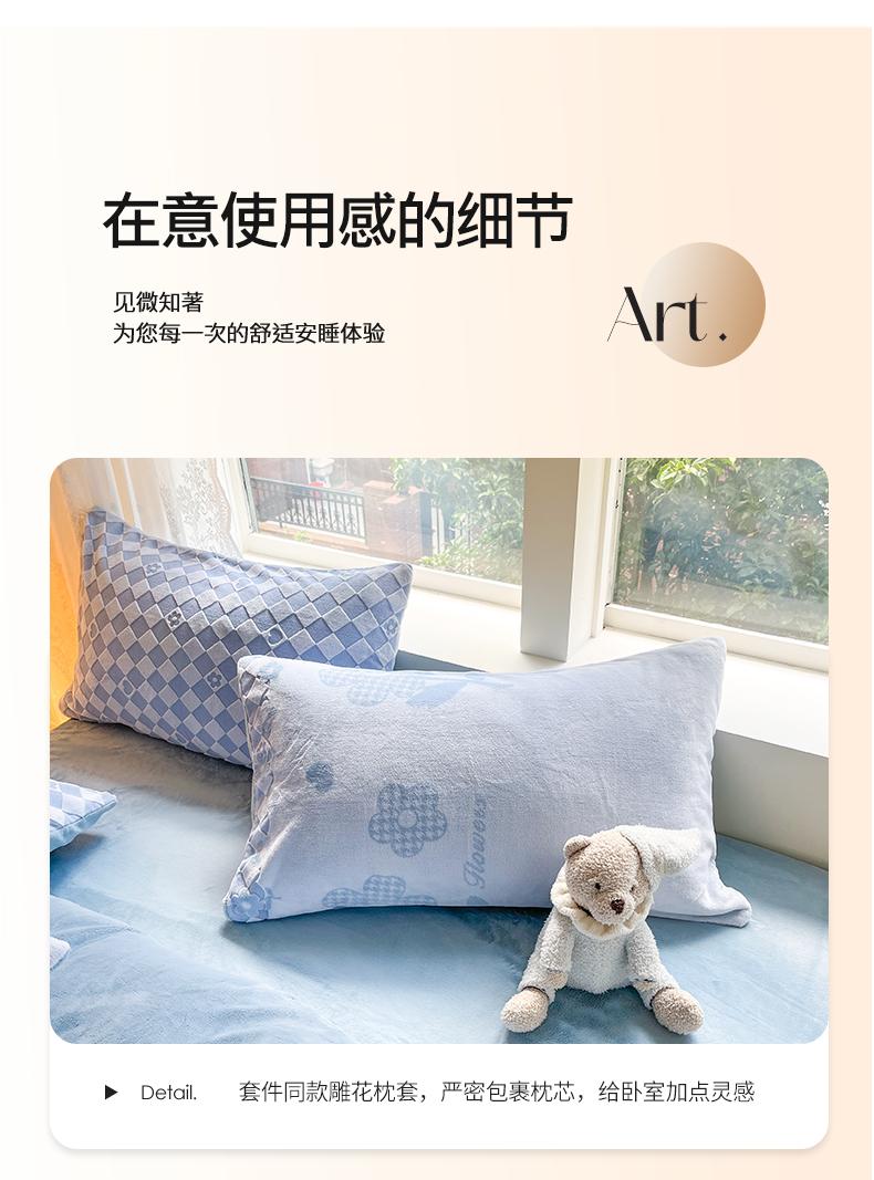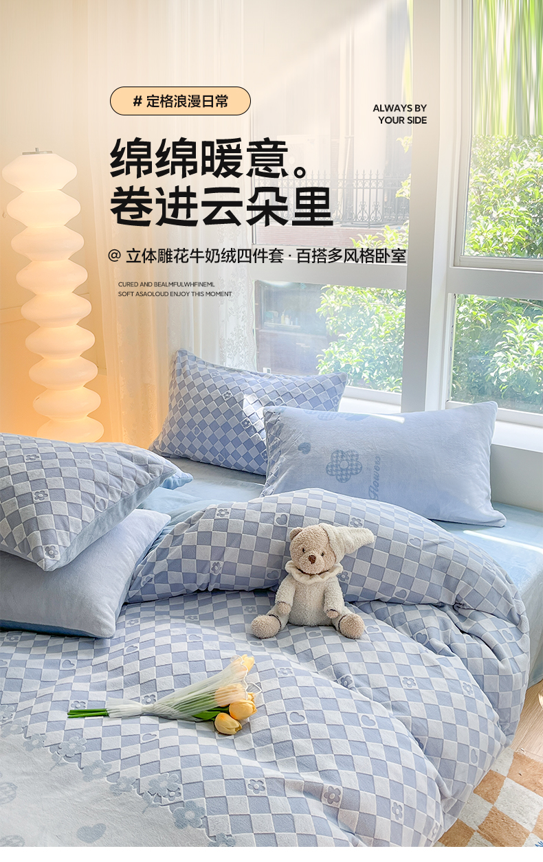 雅居纺家纺 2025新款立体雕花牛奶绒四件套-幸运花系列 幸运花-蓝
