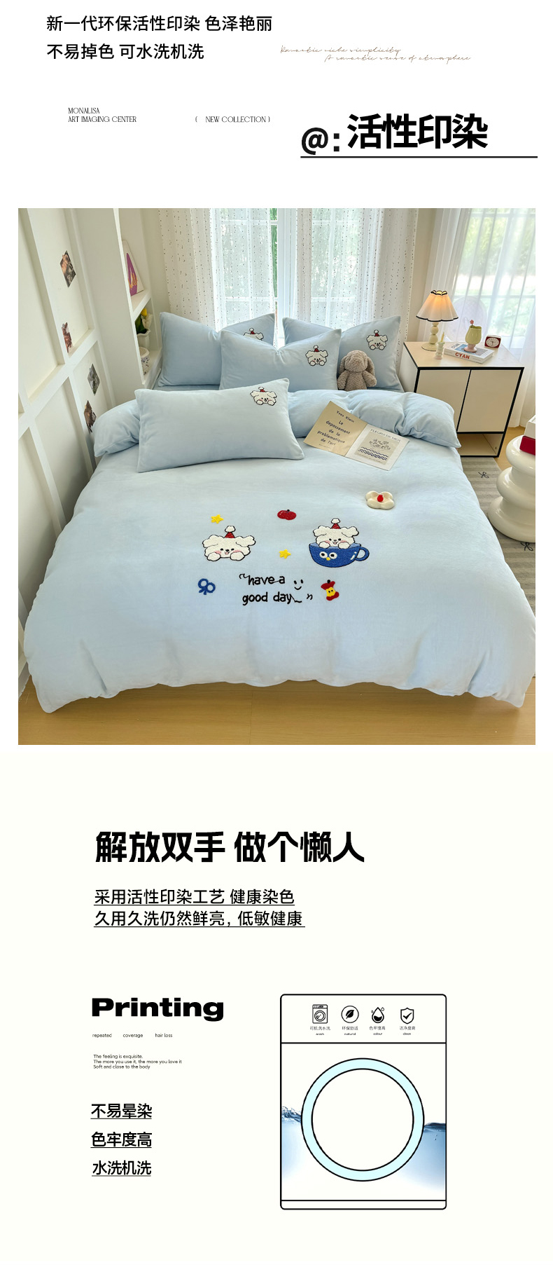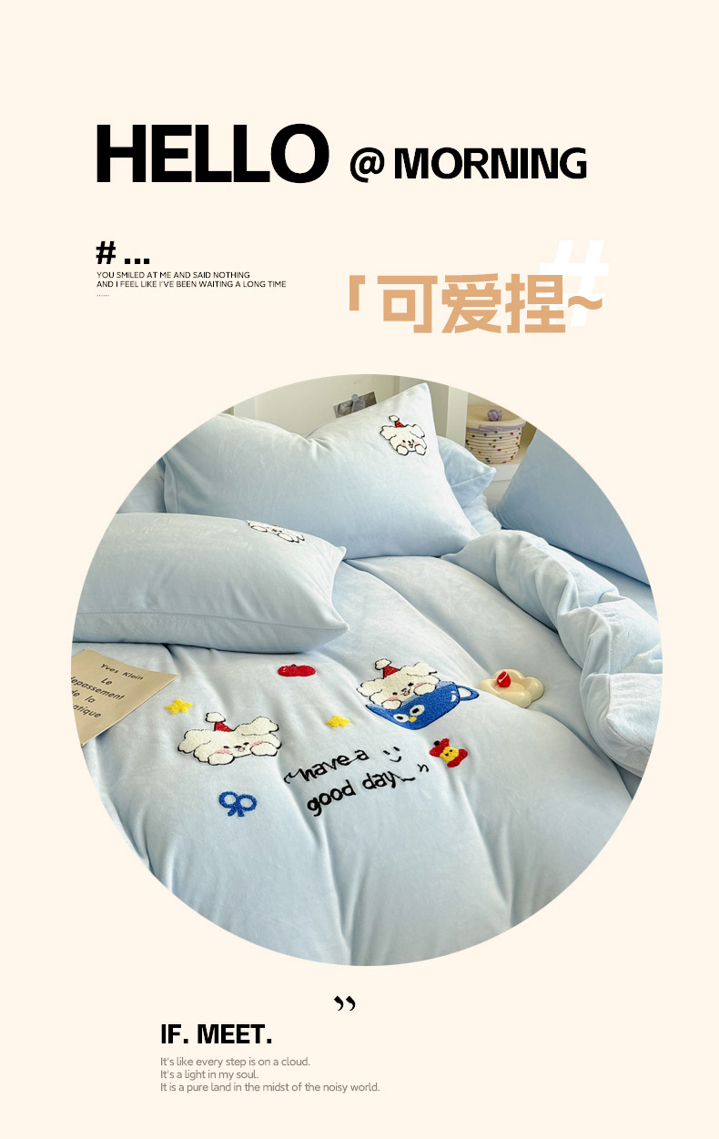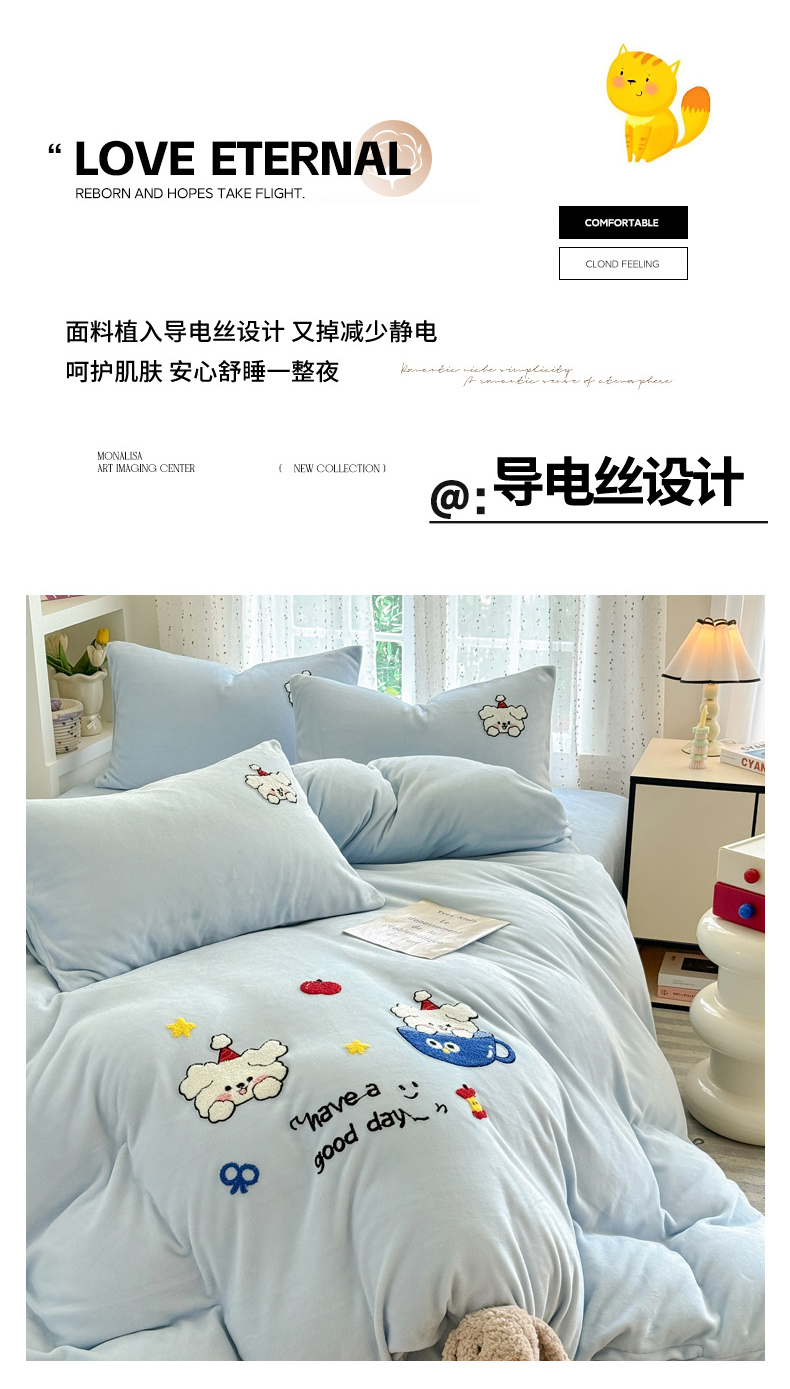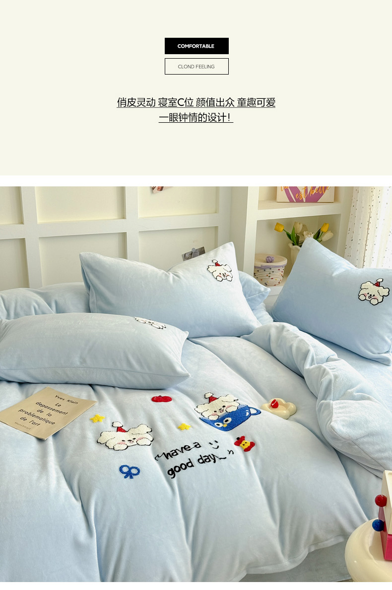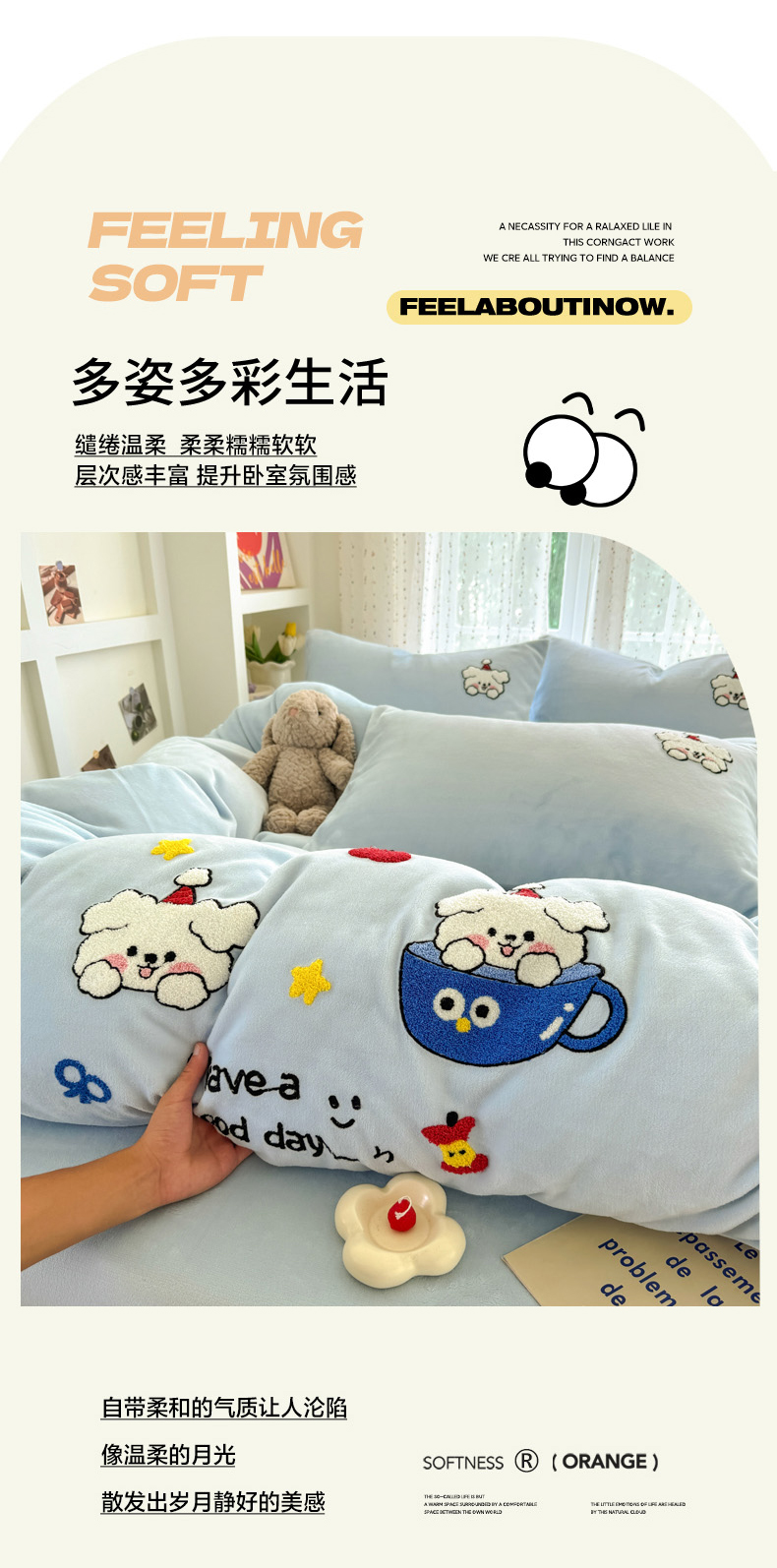 商品名称:恋佳居 2025新款卡通毛巾绣牛奶绒绣花四件套 萌趣