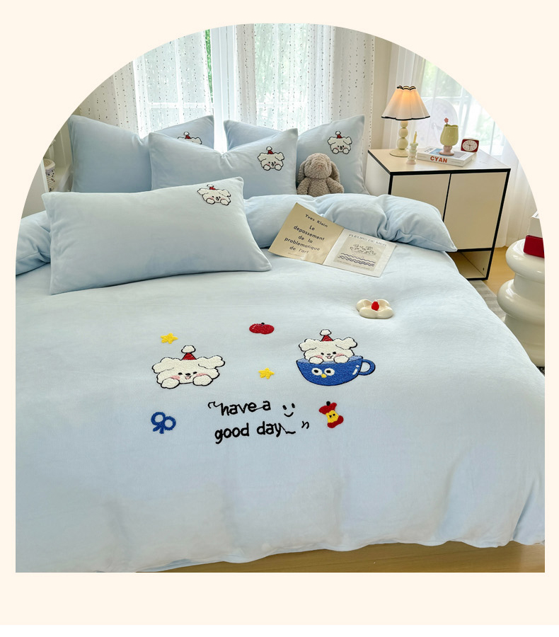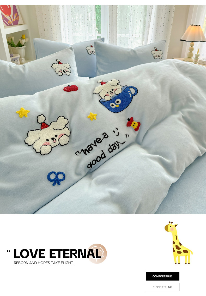 恋佳居 2025新款卡通毛巾绣牛奶绒绣花四件套 萌趣