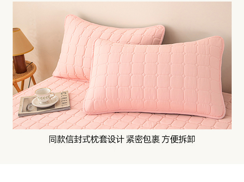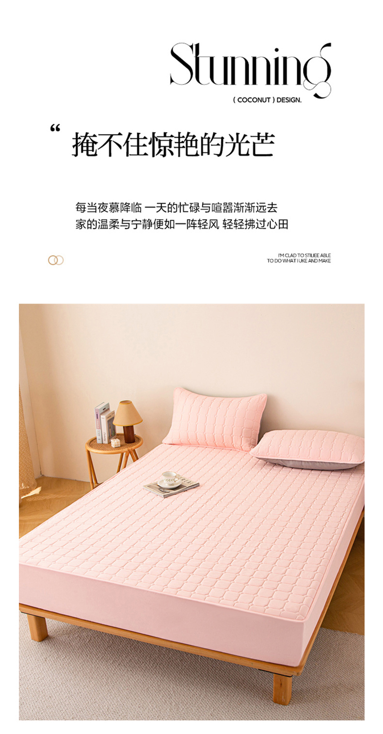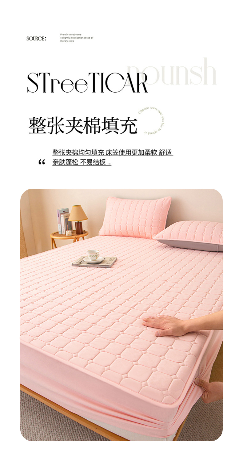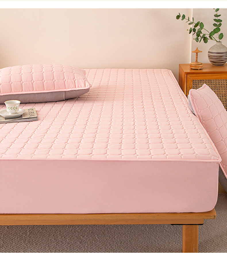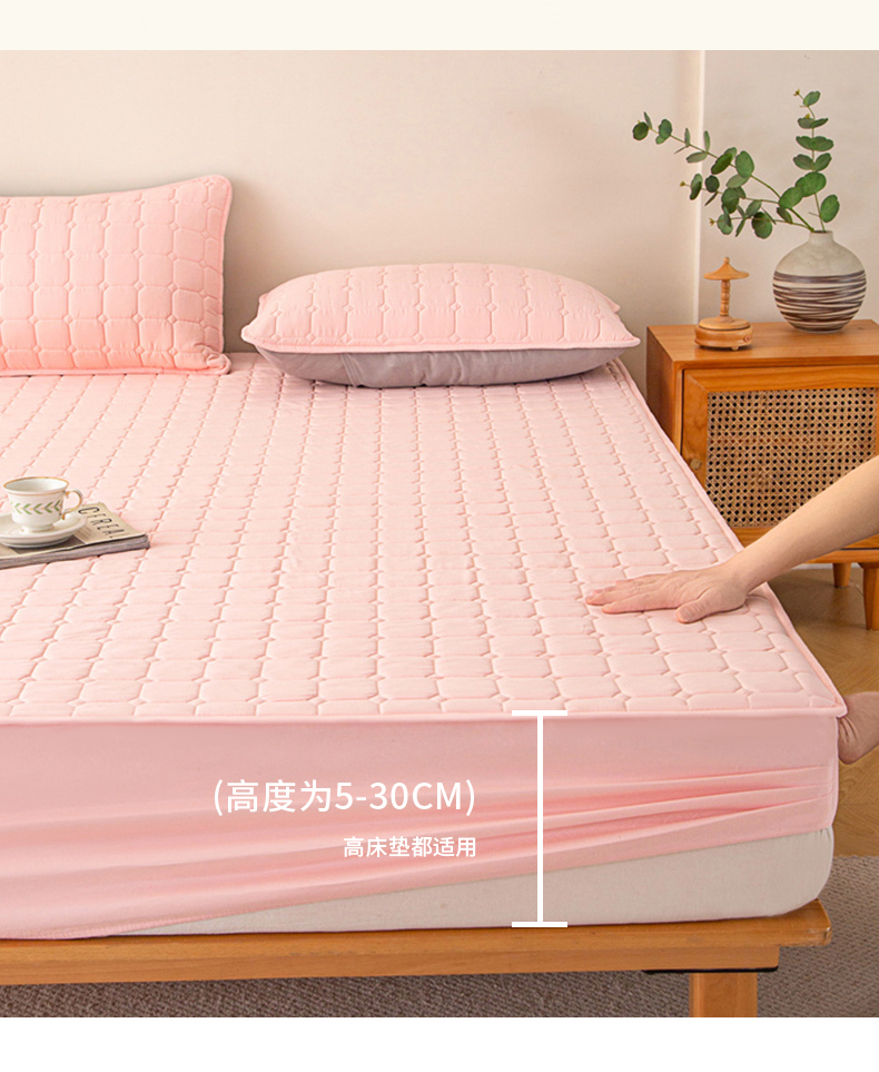 小禹仔家纺 2025新款亲肤面包格夹棉床笠 粉色