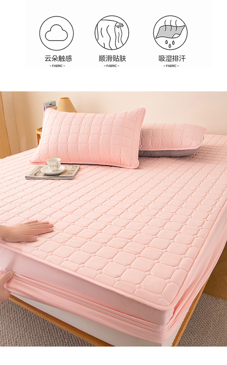 • 91家纺网 家纺一手货源 找家纺 小禹仔家纺 2025新款亲肤面包格夹棉床笠 粉色
