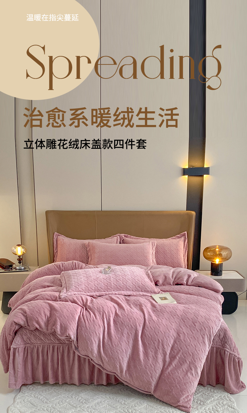 (总)美伦美焕 2025新款加厚雕花绒床盖款四件套-浅叶,浅叶-粉玉,浅叶-卡其,浅叶-绅士灰,浅叶-蔚蓝,浅叶-胭脂红