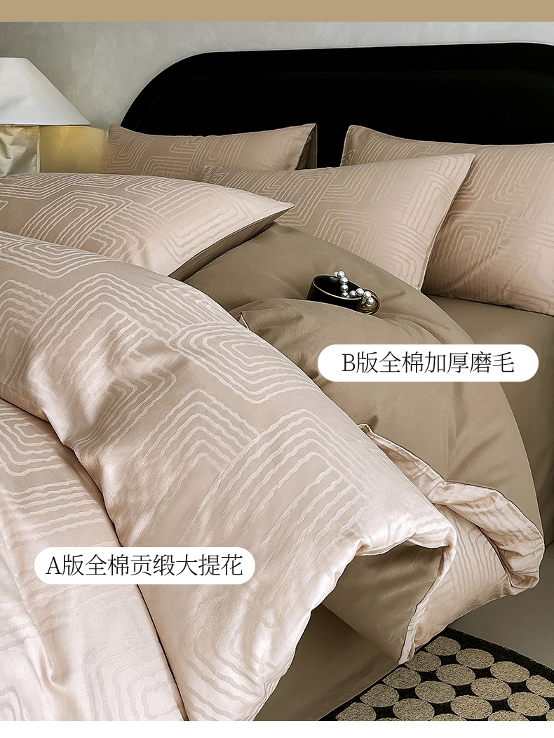 (总)琪格格纺织 2025新款50S贡缎大提花加厚全棉磨毛四件套,罗拉之梦-可可棕,理查德-咖,流光蝶影-粉紫,罗拉之梦-粉紫,如梦花涧-雨棕,随意-咖,心愿-粉紫,一蔓千花-羽棕,永恒韵律-灰,永恒韵律-咖