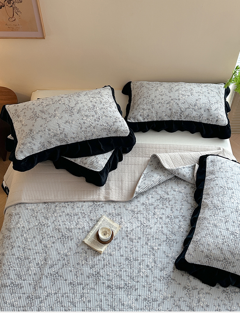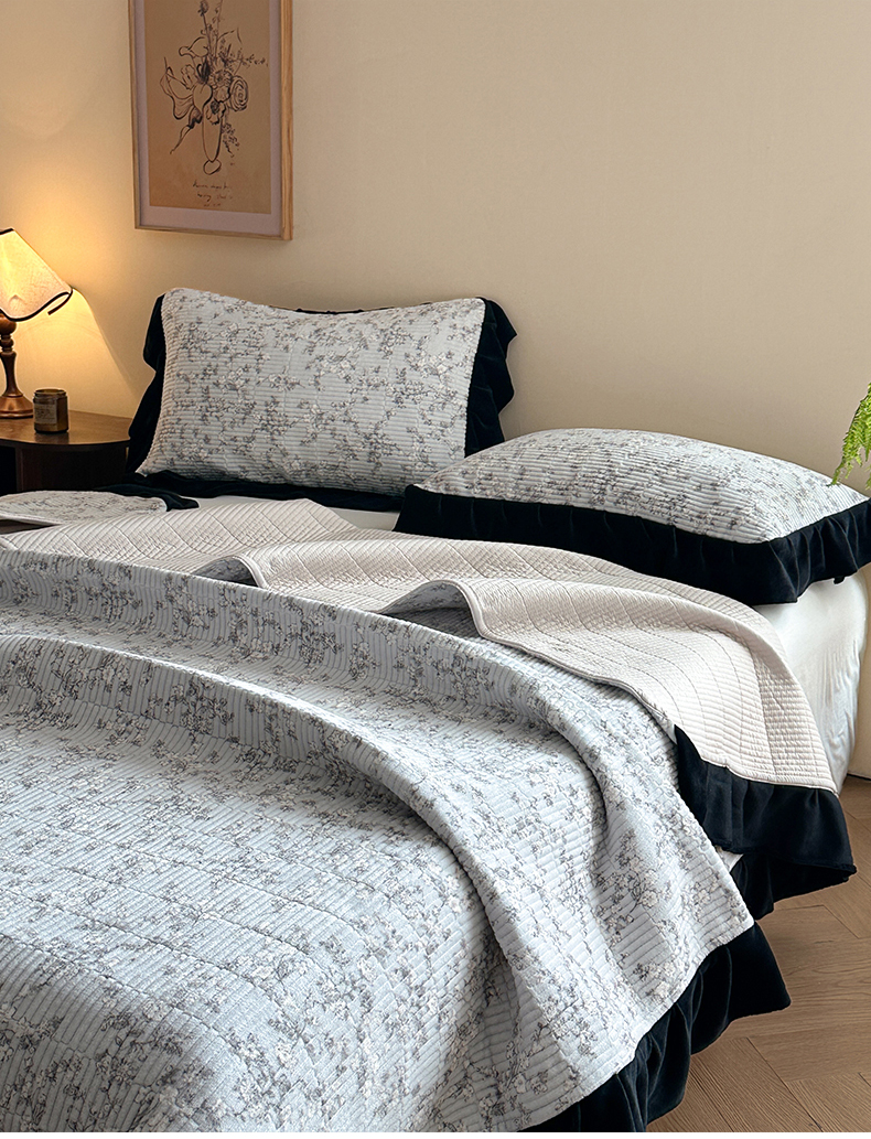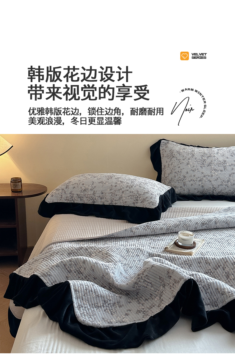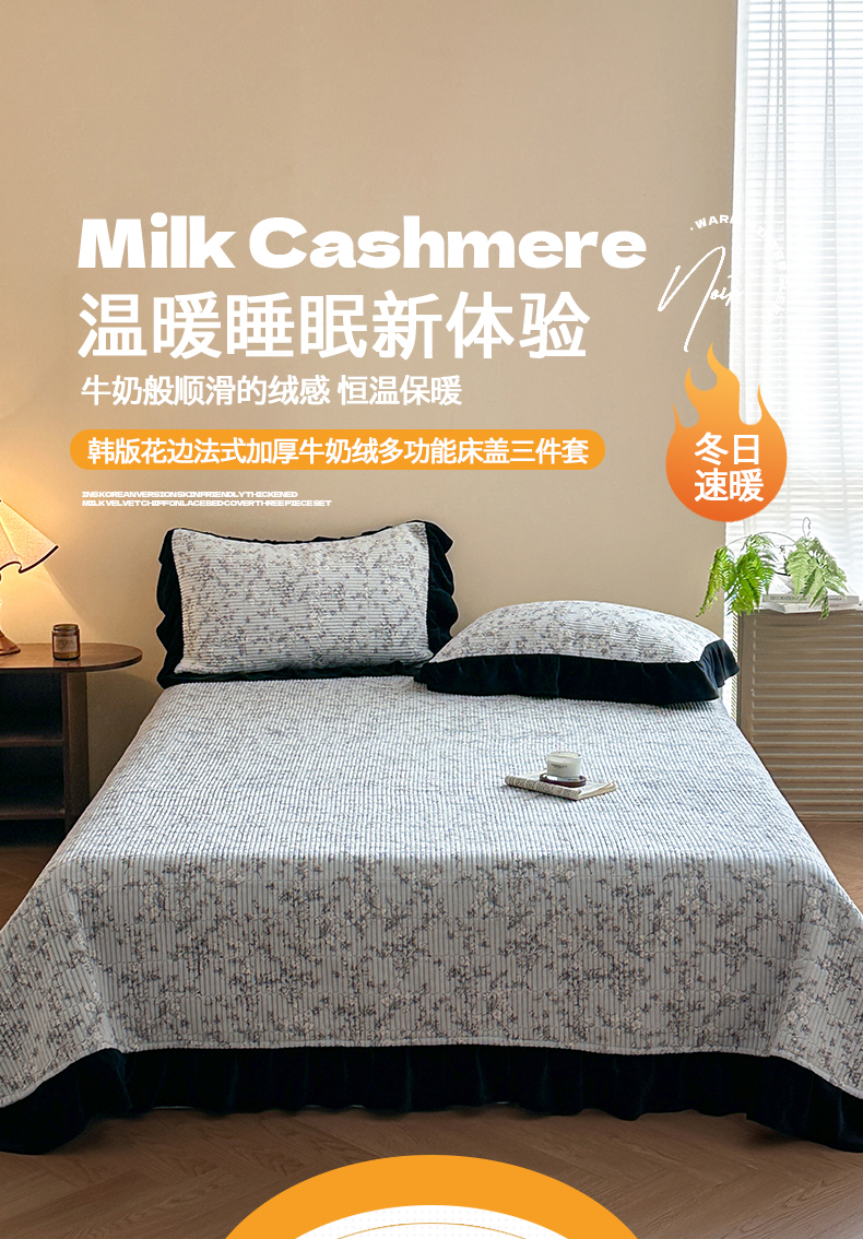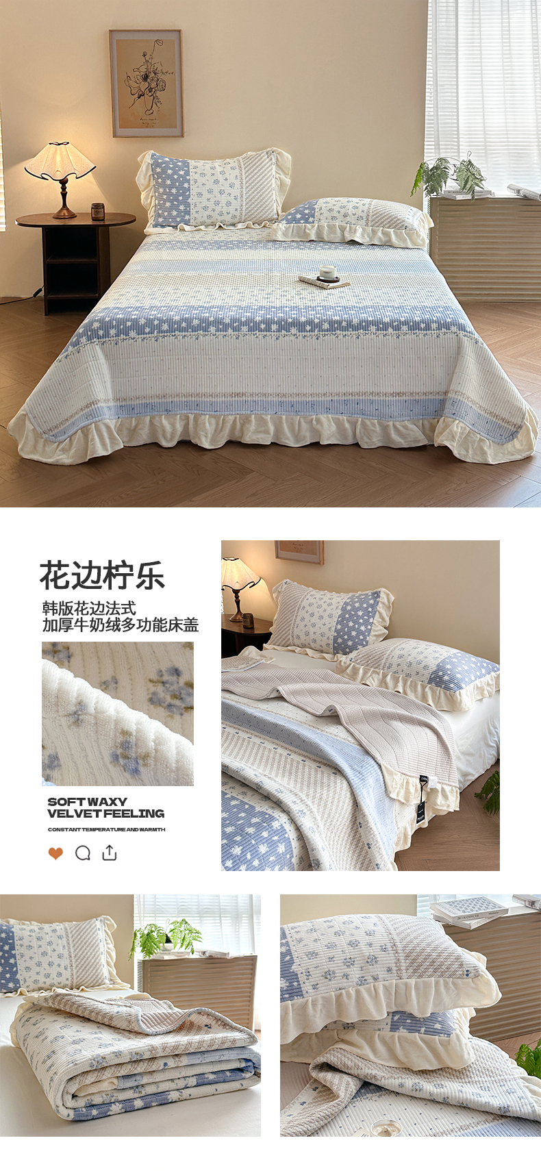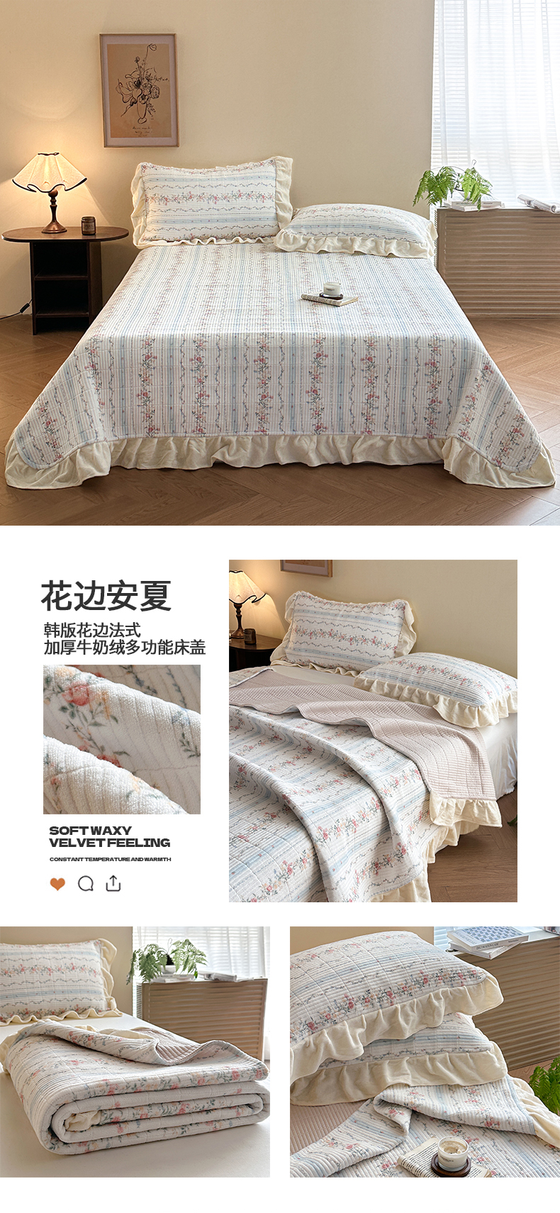 商品名称:桃心家居 2025新款韩版花边法式花卉碎花加厚牛奶绒多功能床盖单件单床盖床盖三件套单品 绒床盖-花边梦雅