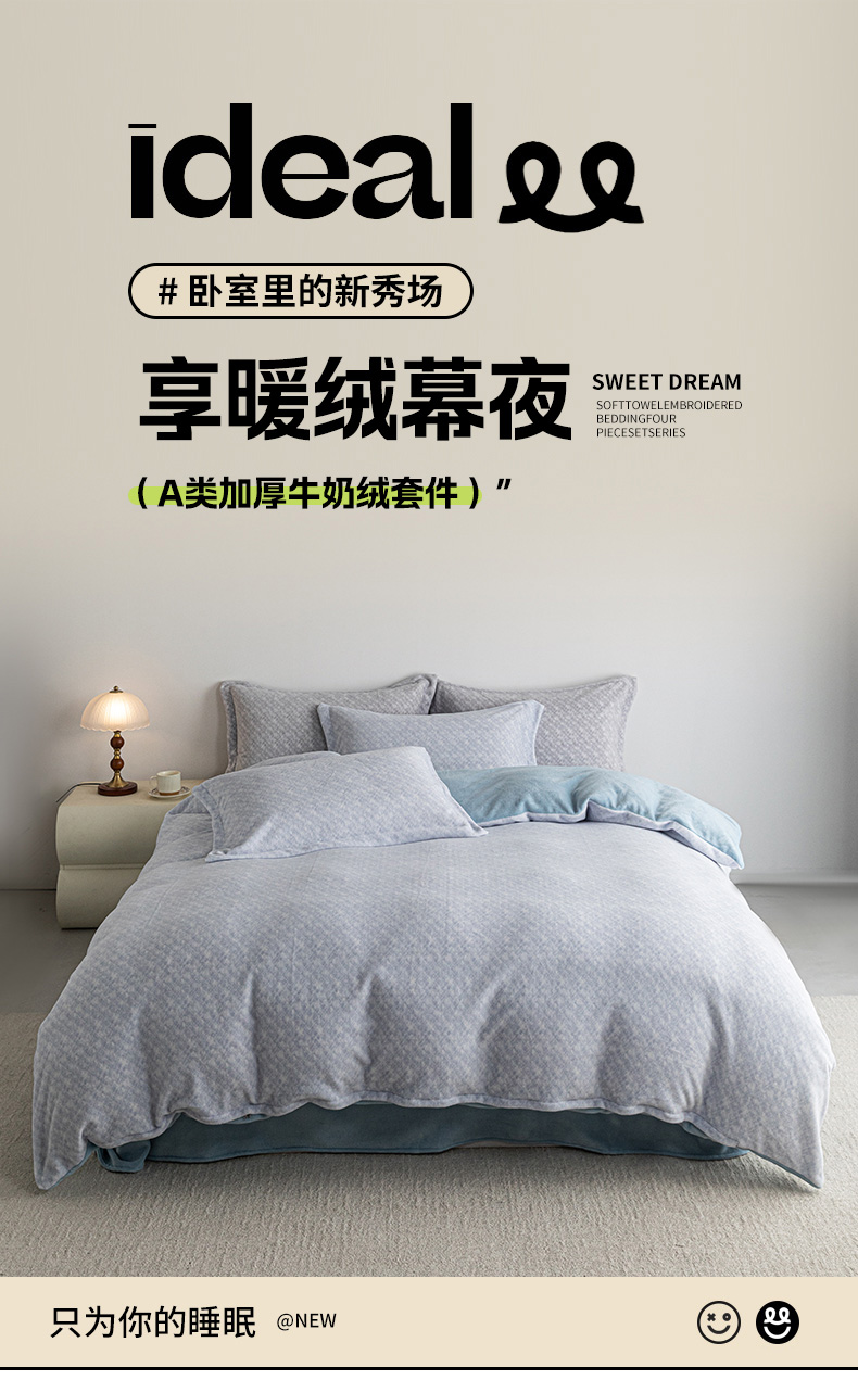 当前位置: 91家纺网 > 商品网购 > 床品套件 > 四件套 > 牛奶绒四件套 > 锦罗绣 2025新款牛奶绒肌理纹四件套 肌理纹-蓝