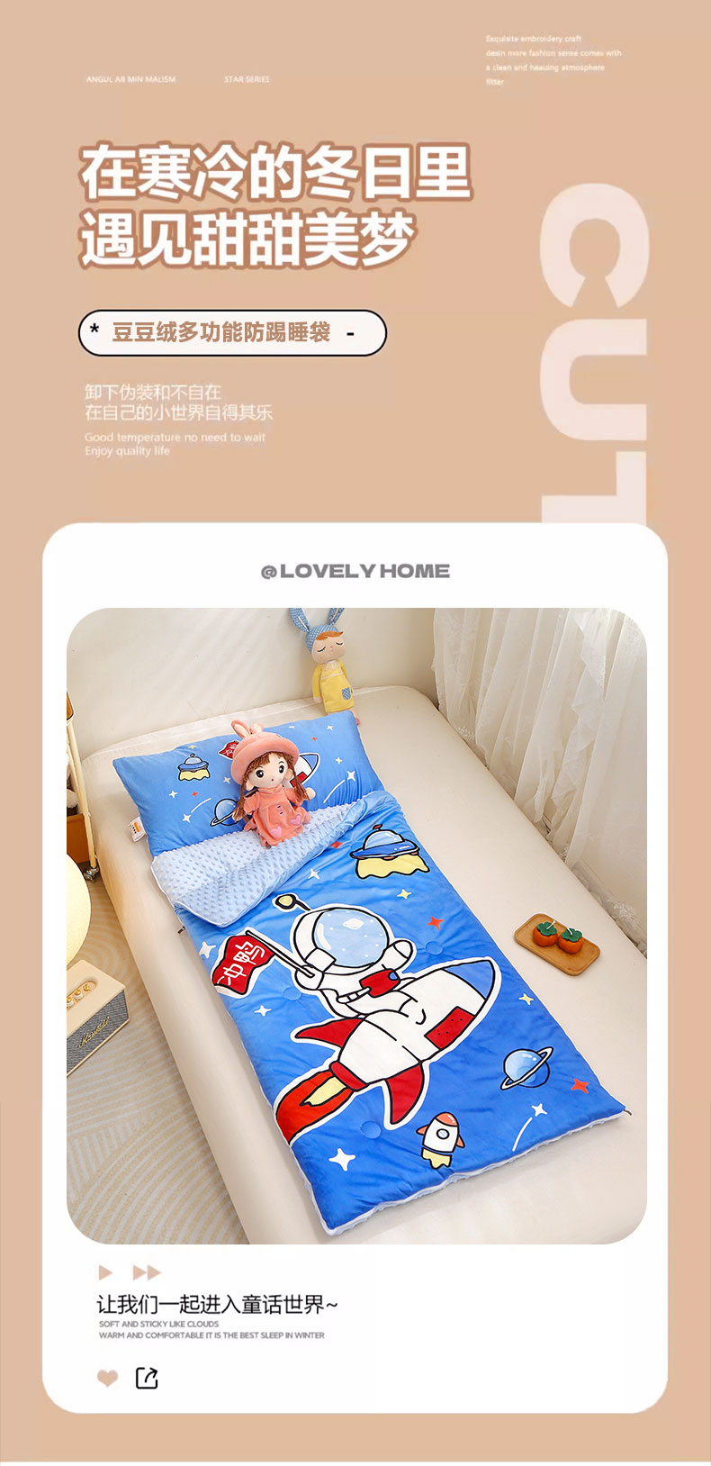 (总)八零年代 2025新款秋冬加厚豆豆绒儿童一体睡袋宝宝绒防踢被,机甲兄弟,机甲战士,拉多多,蓝色小马,炫彩小马,月亮卡皮,彩虹库米,战士英雄,太空旅行,饼干小狗,粉色小兔,粉红马,雪公主,格子紫兔,条纹库米,顽皮企鹅