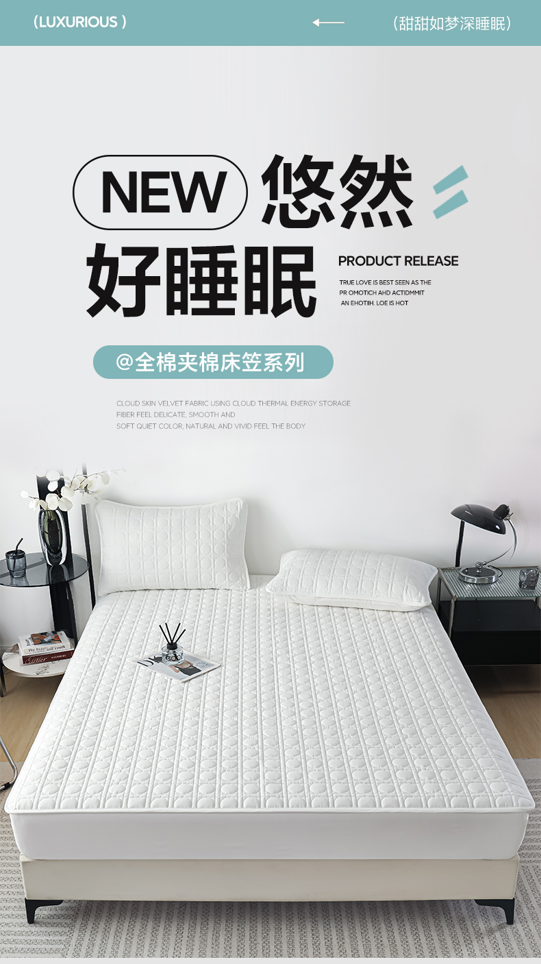 • 91家纺网 家纺一手货源 找家纺 佳笠家居 2025新款全棉纯棉夹棉床笠四季通用席梦思保护套床罩-初见系列 卡其色