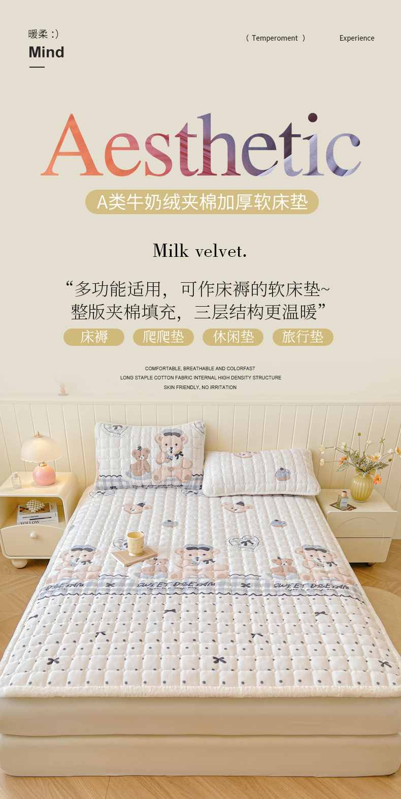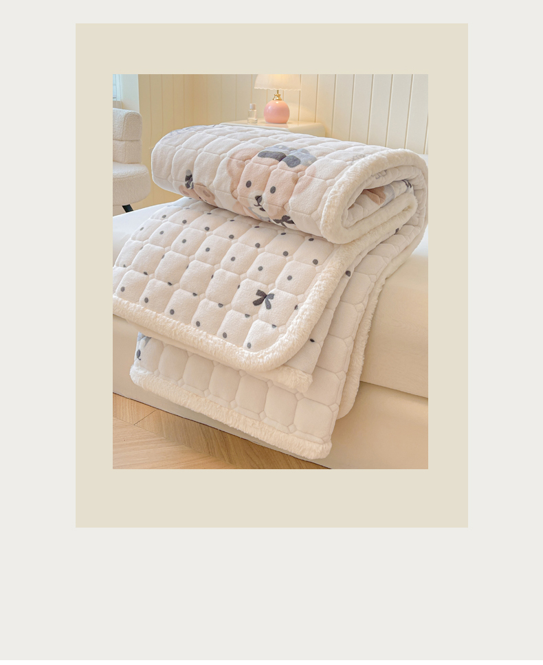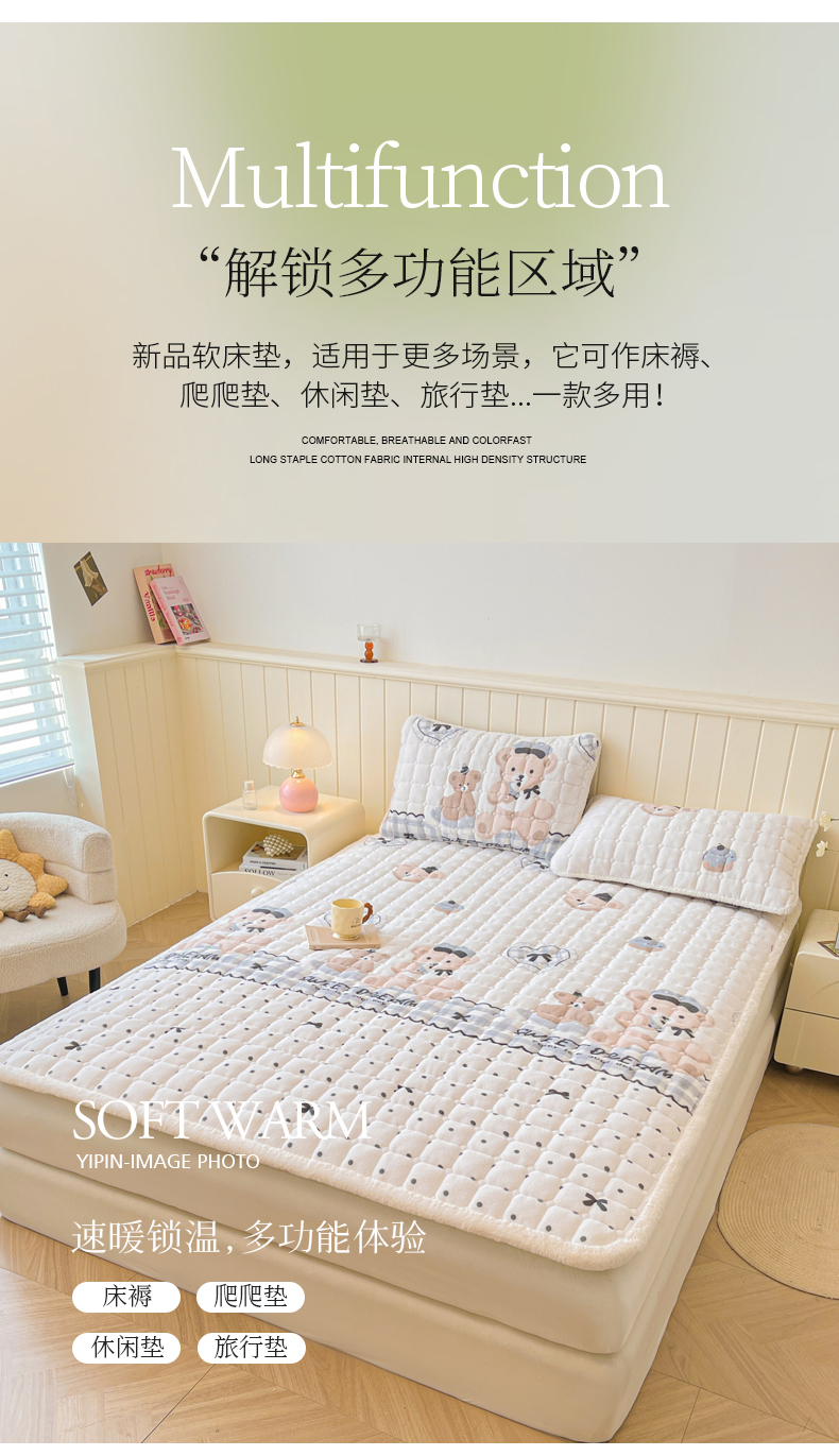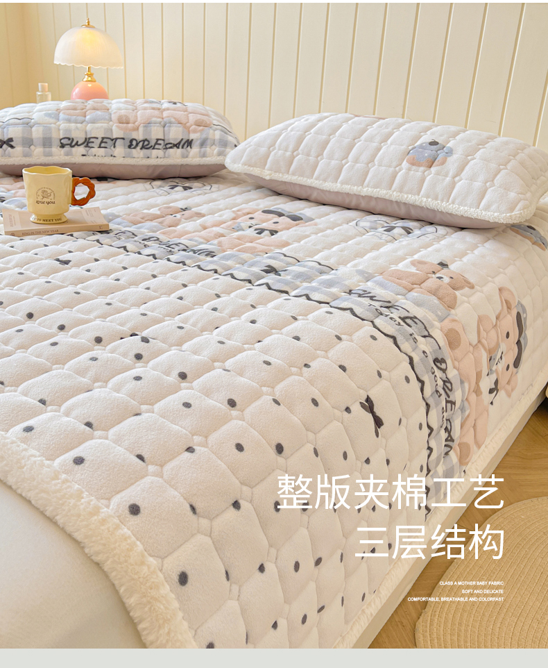 • 91家纺网 家纺一手货源 找家纺 LIFE.丽芙 2025秋冬新款牛奶绒加厚夹棉床垫床护垫单件印花卡通小清新床褥床垫子三件套 安心熊仔