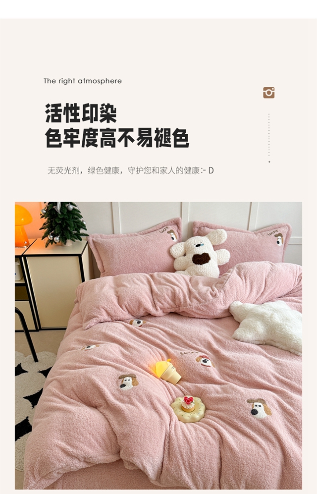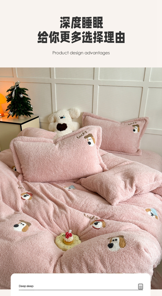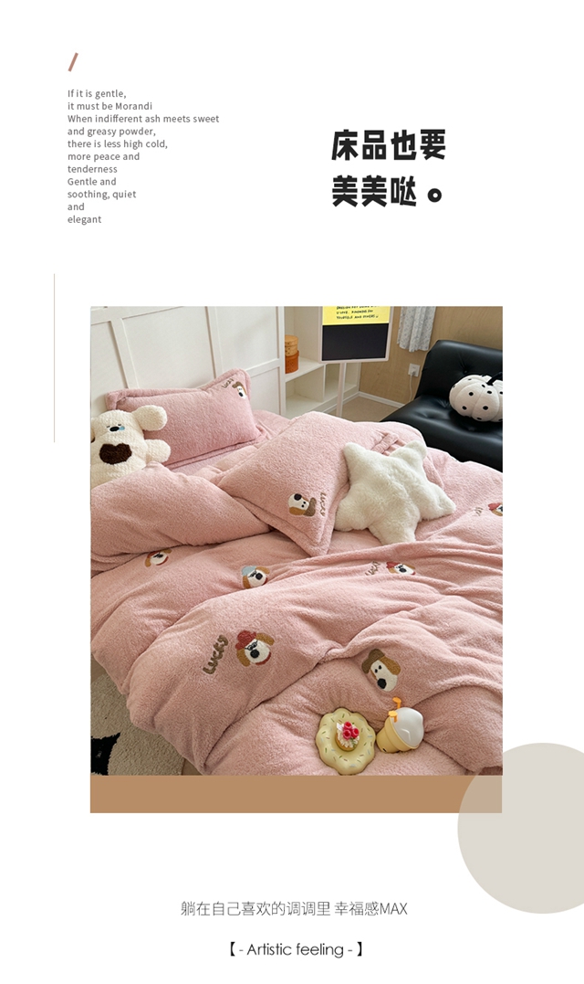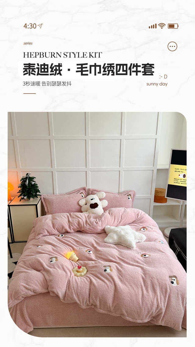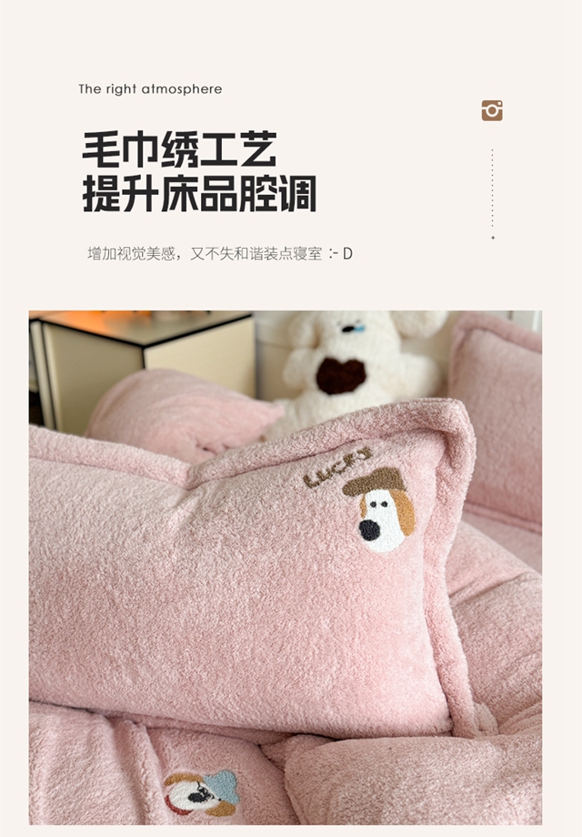(总)萝莉家纺 2025新款加厚泰迪绒毛巾绣四件套,腊肠狗蓝,可爱狗米白,可爱狗深米,礼帽狗,圣诞树黄,小免蓝,小木马少女粉,小木马水兰,小企鹅豆沙粉,小企鹅米白,小兔茶粉,小熊奶白,熊豆绿,熊猫白,熊猫紫