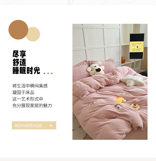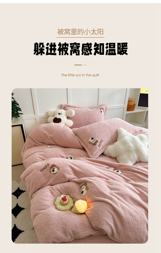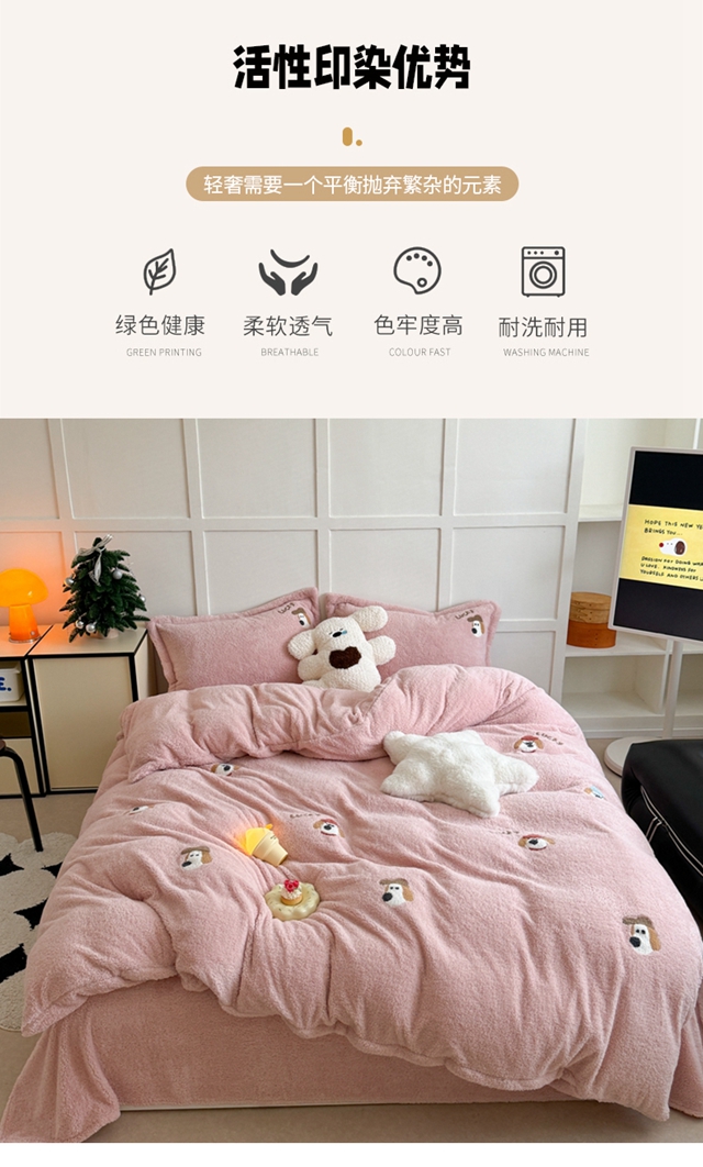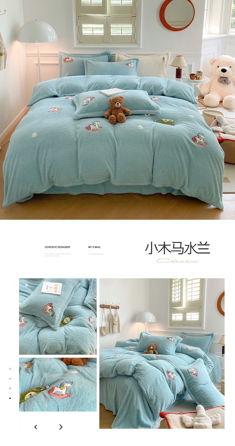 (总)萝莉家纺 2023新款230克高克重软绵绵的泰迪绒四件套,小免蓝,小木马少女粉,小木马水兰,小兔茶粉,小熊奶白,熊豆绿