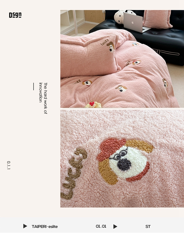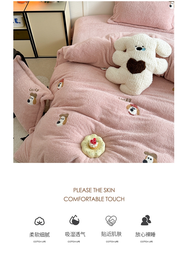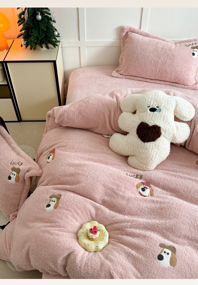 萝莉家纺 2025新款加厚泰迪绒毛巾绣四件套 礼帽狗
