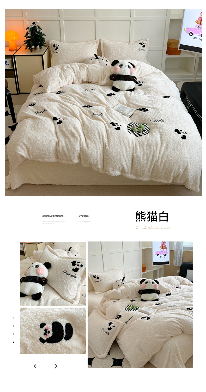 萝莉家纺 2025新款加厚泰迪绒毛巾绣四件套 熊猫白