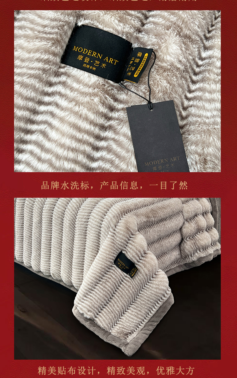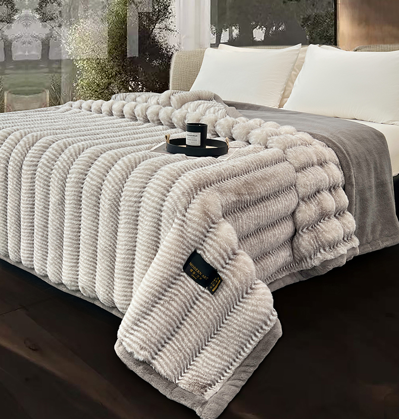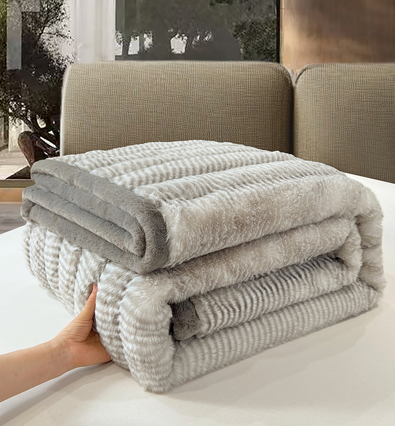 商品名称:凯轩毛毯网销专供 2025新款婚庆仿皮草彩波纹艺术毯毛毯毯子-彩波纹 彩波纹-浅灰