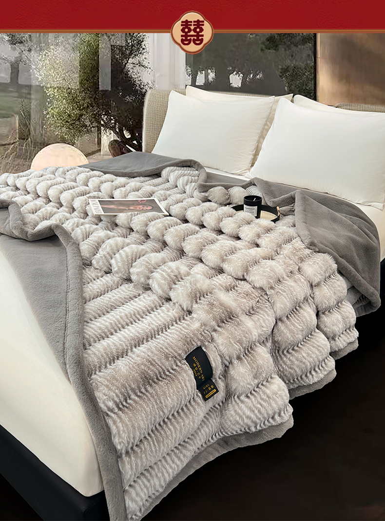 (总)凯轩毛毯网销专供 2025新款仿羔羊绒毯毛毯婚庆毯保暖毯子,高级灰,米白,驼色