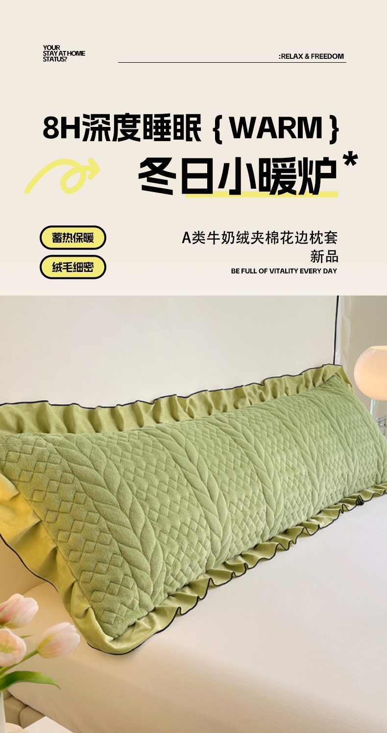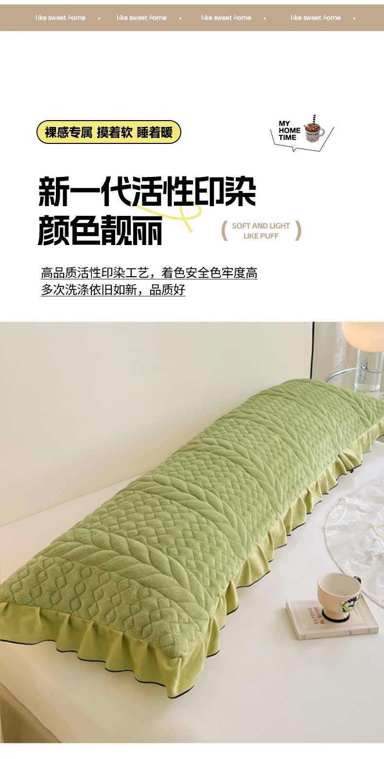 商品名称:梦舒羽 2025新款牛奶绒夹棉花边枕套情侣双人加长枕芯套枕头套-轻奢 花边轻奢款-果绿