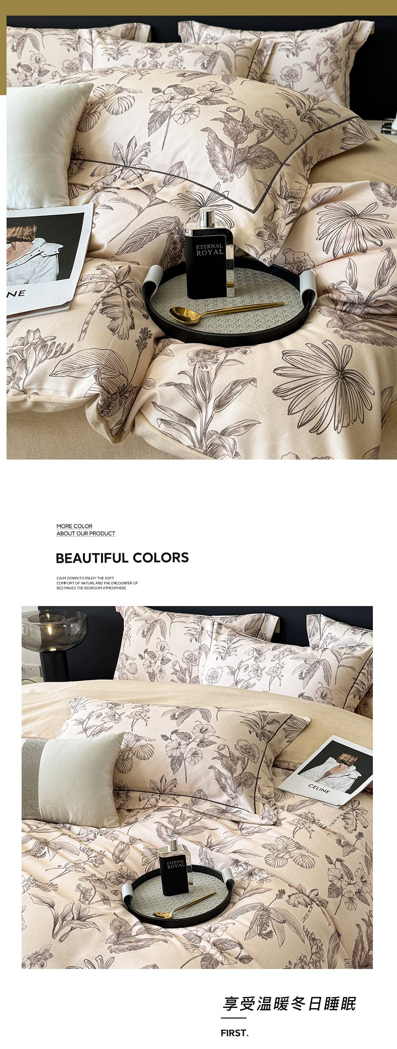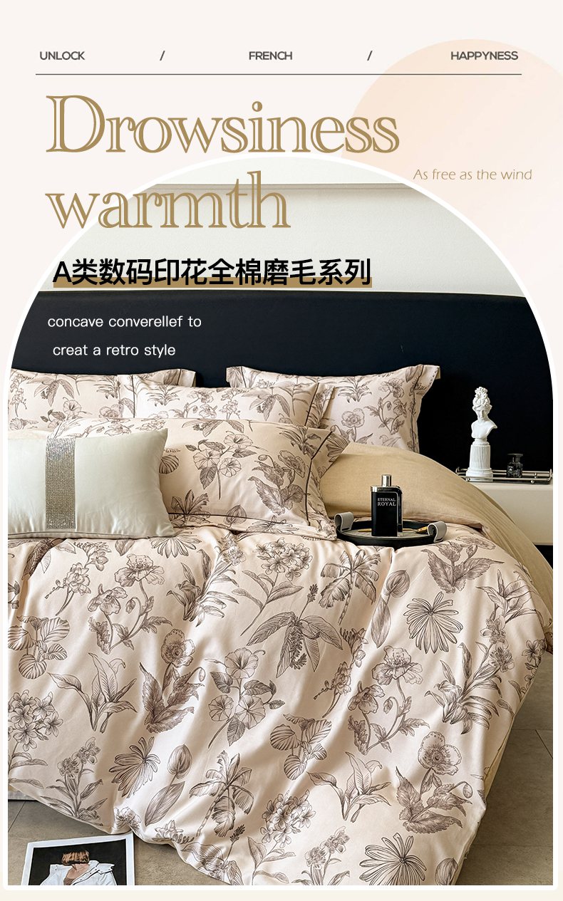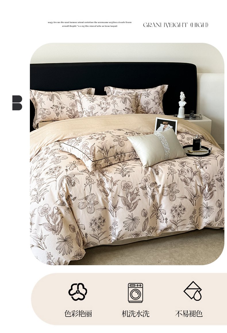 当前位置: 91家纺网 > 商品网购 > 床品套件 > 四件套 > 普通磨毛四件套 > 梵克保罗 2025秋冬新款数码印花全棉磨毛单被套三件套四件套系列 叶舒