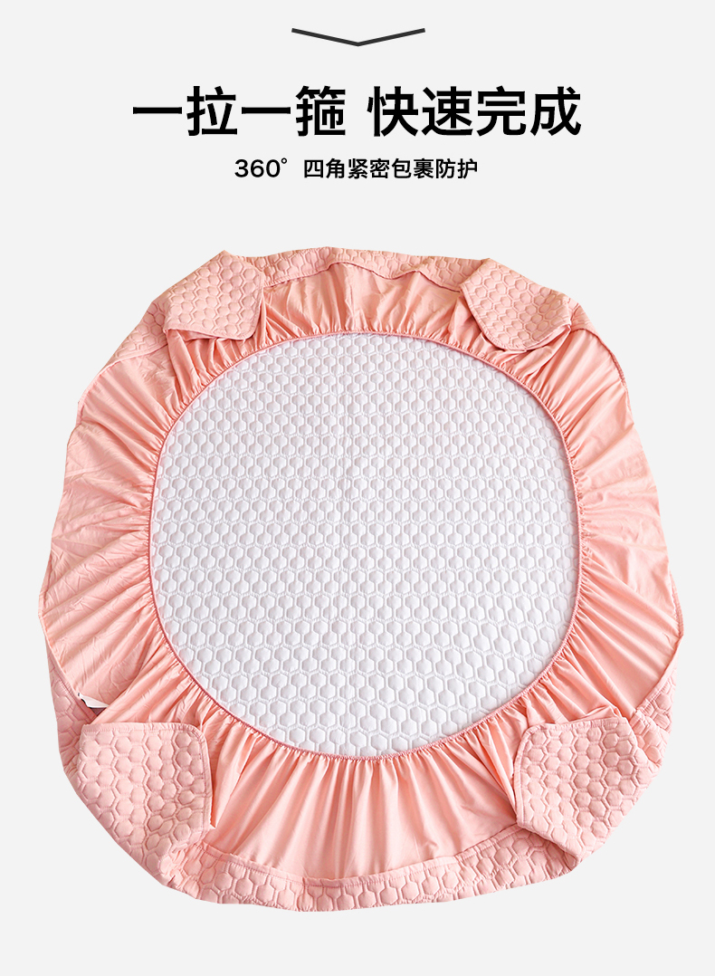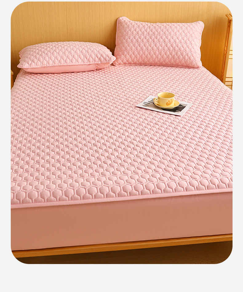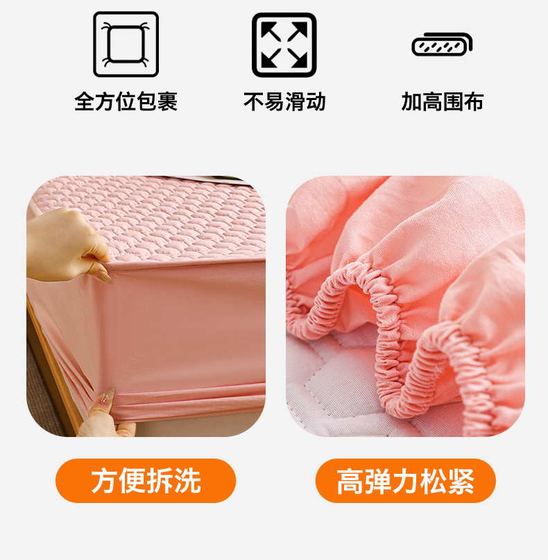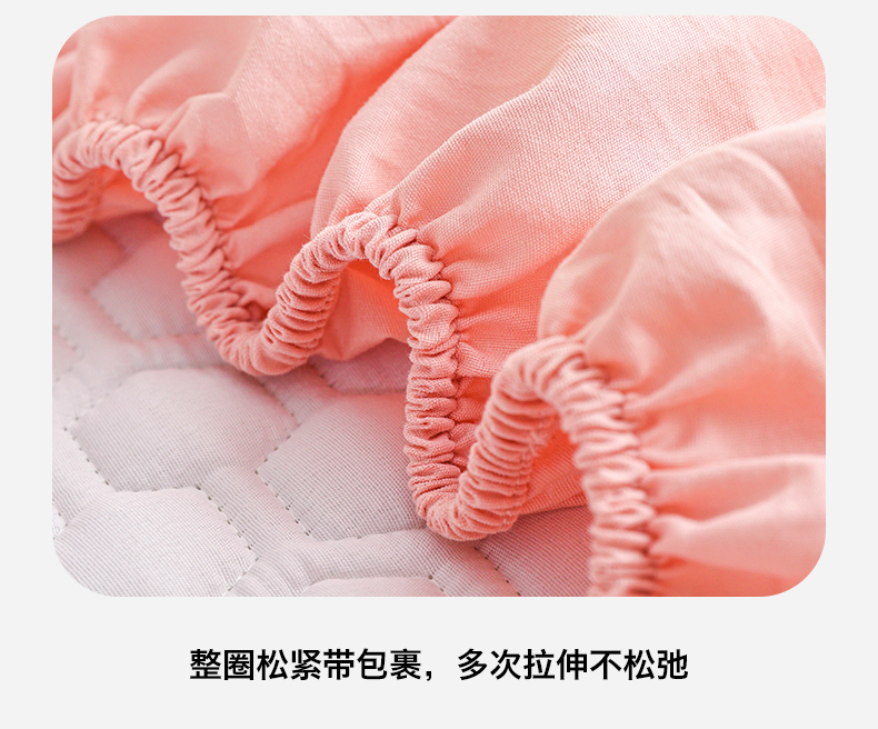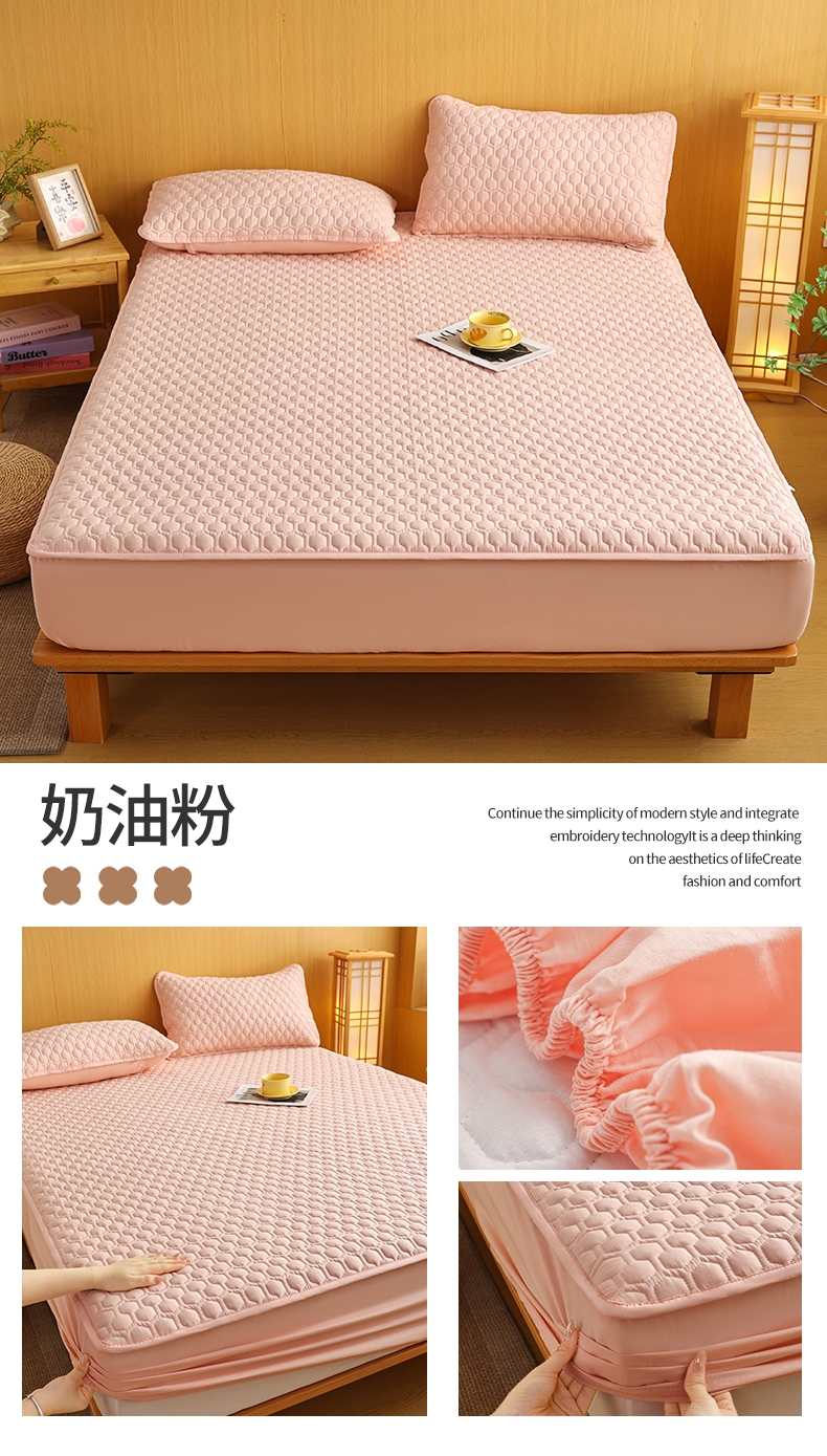 • 91家纺网 家纺一手货源 找家纺 恒爱家纺 2025新款全棉绗绣单品床笠 水柿粉