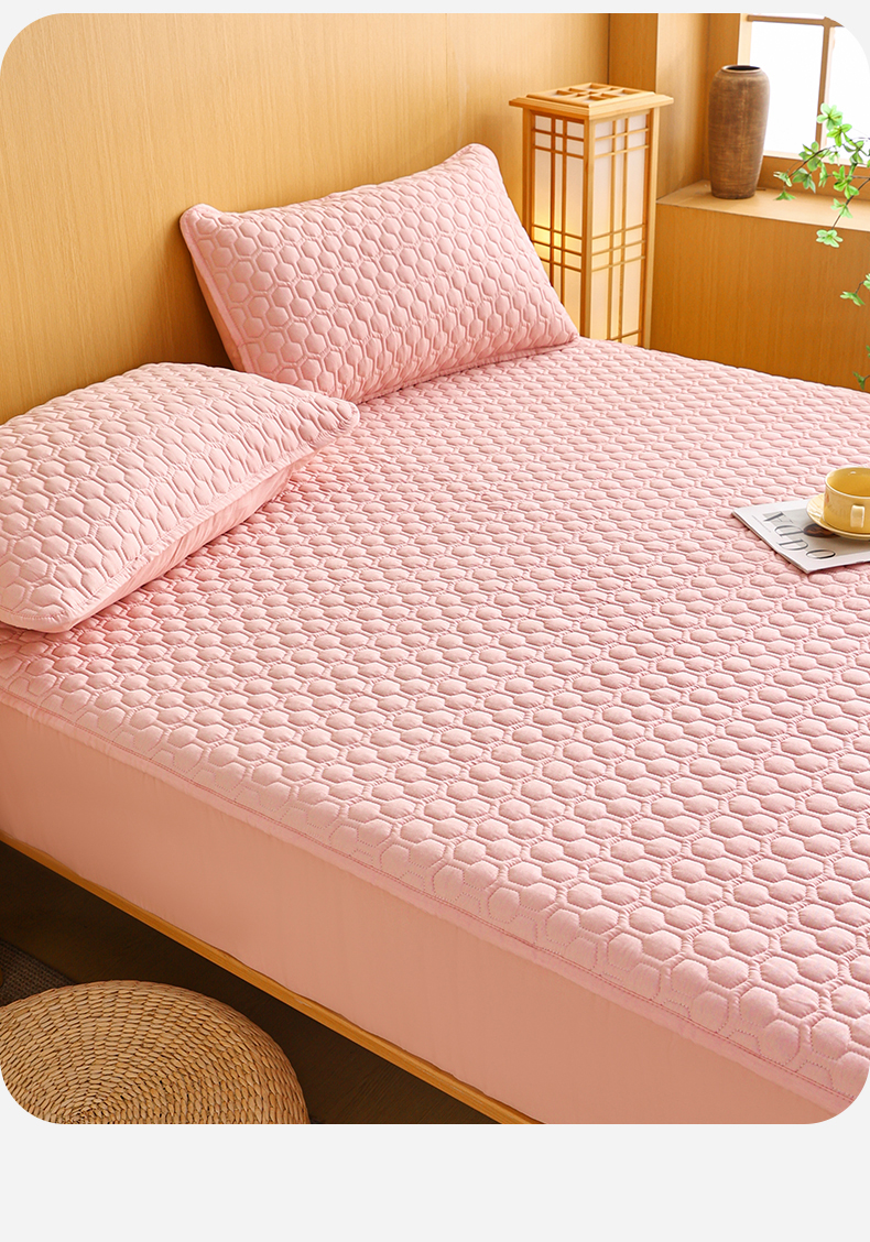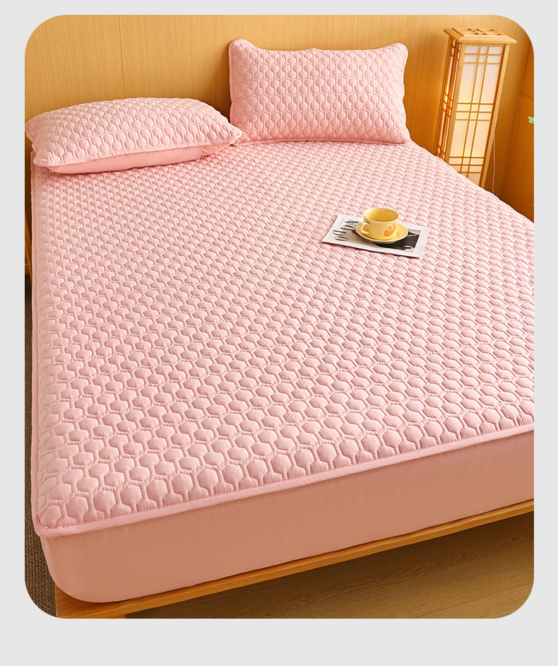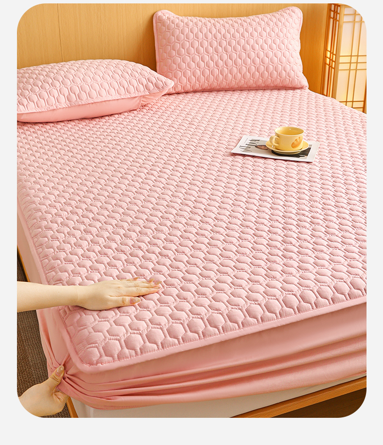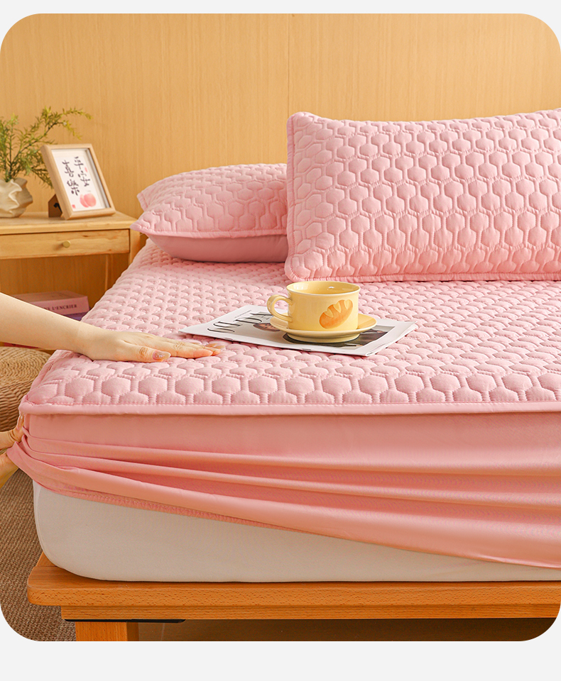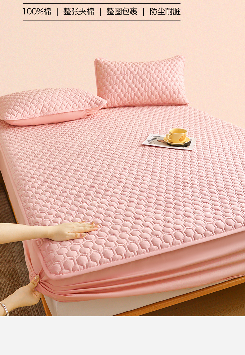 恒爱家纺 2025新款全棉绗绣单品床笠 水柿粉