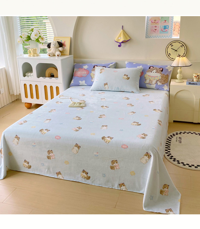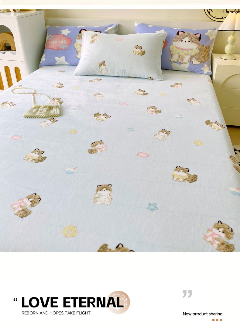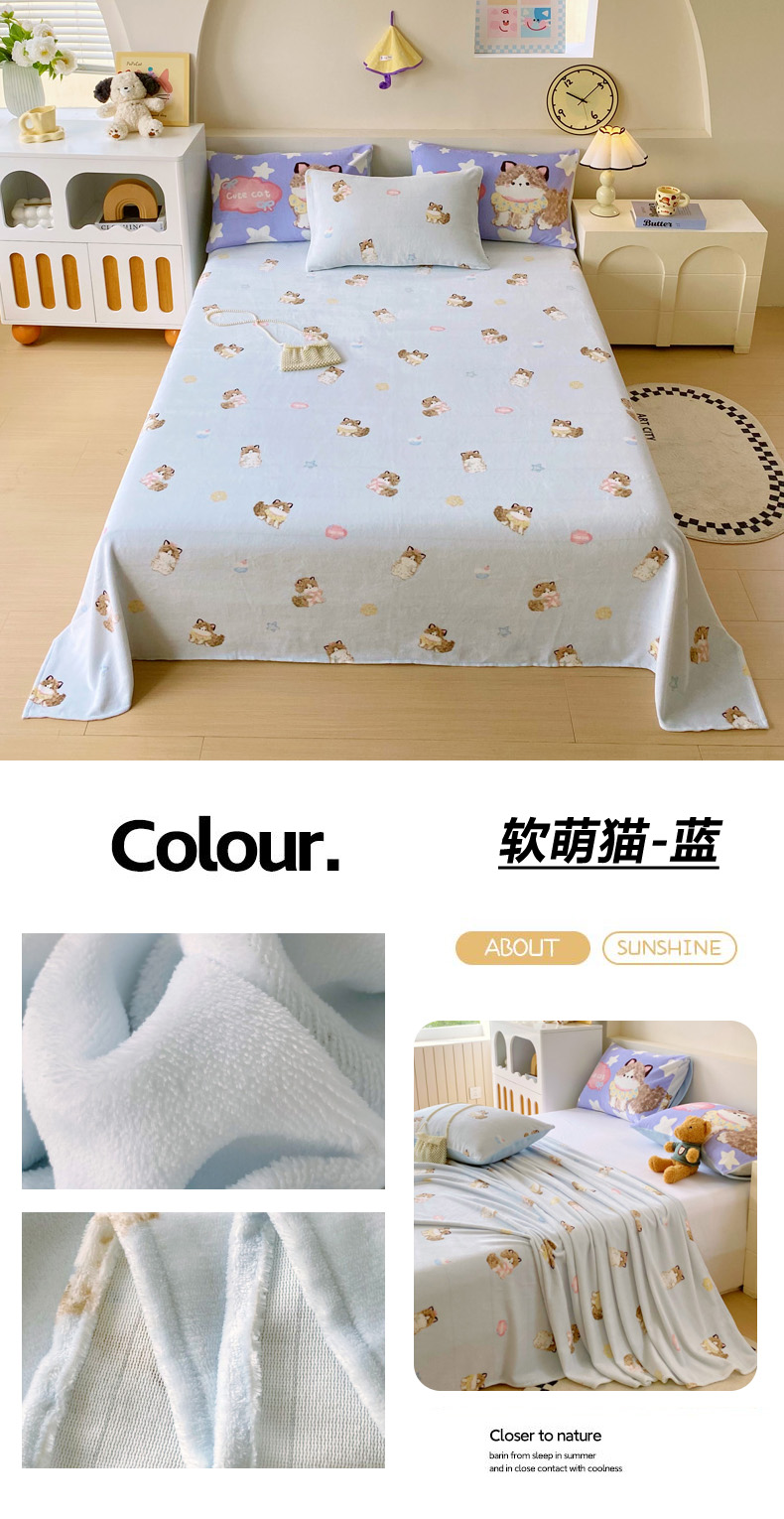 葡萄家 2025年新款牛奶绒印花单床单萌系卡通床单款 软萌猫蓝
