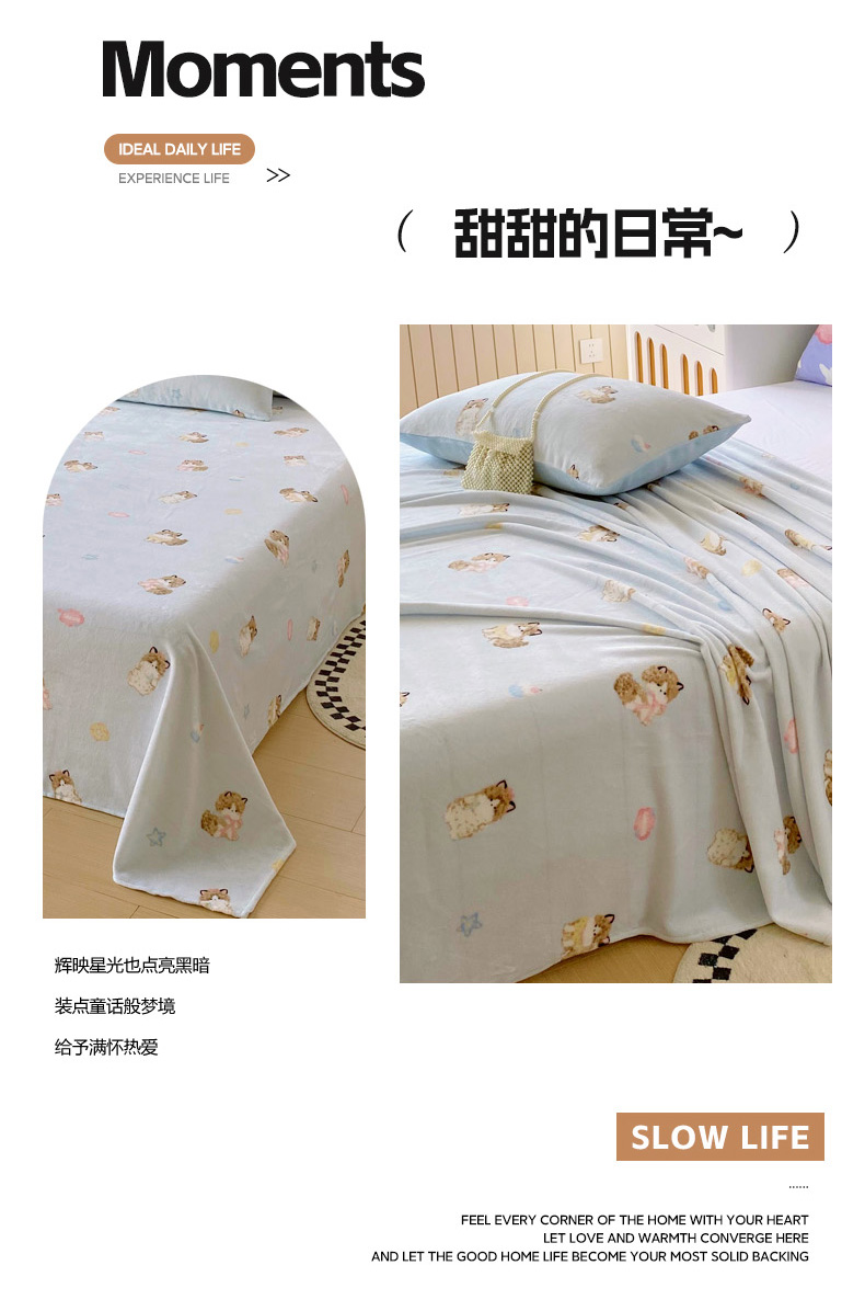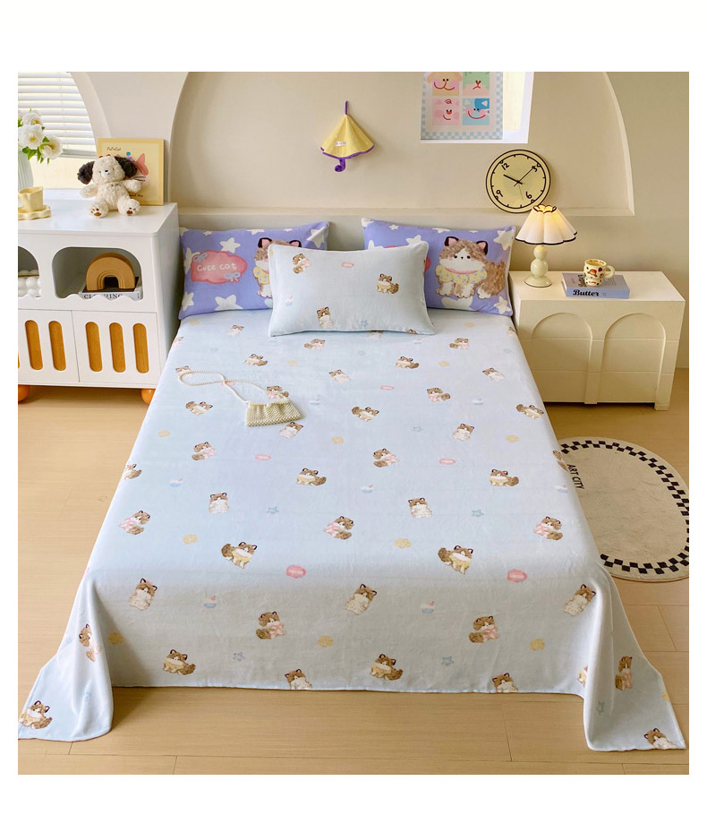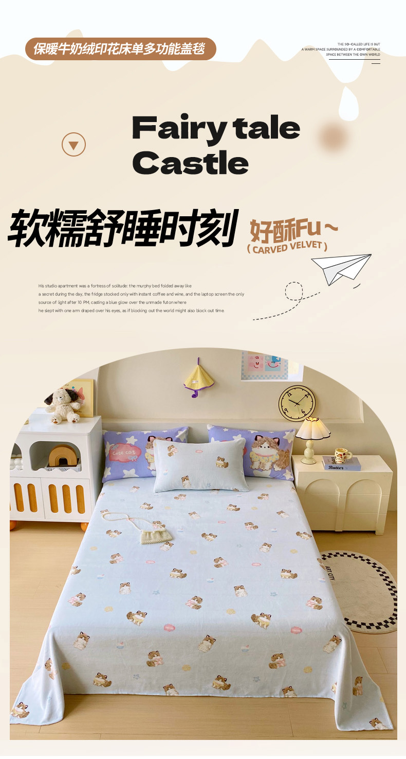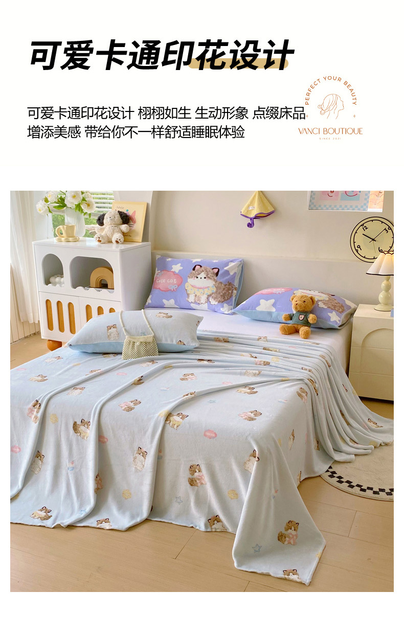 • 91家纺网 家纺一手货源 找家纺 葡萄家 2025年新款牛奶绒印花单床单萌系卡通床单款 软萌猫蓝