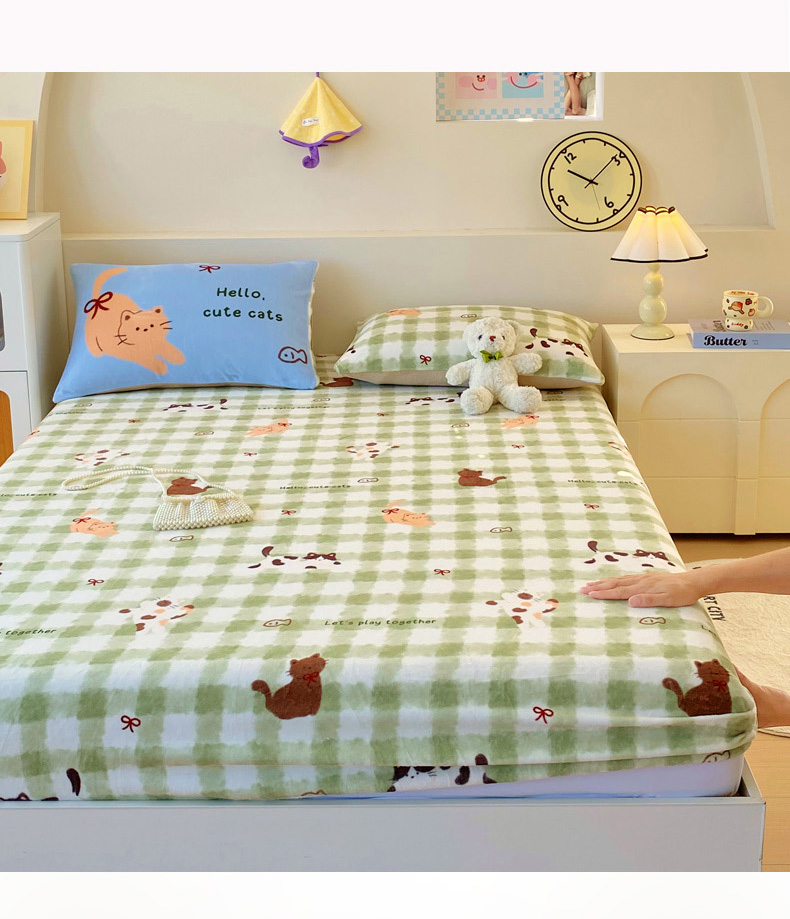 (总)葡萄家 2025年新款新增花型牛奶绒印花单床笠萌系卡通单品床笠床笠单件,哈曼猫,豹纹猫粉,豹纹猫蓝,波西狗,萱花,雪花熊