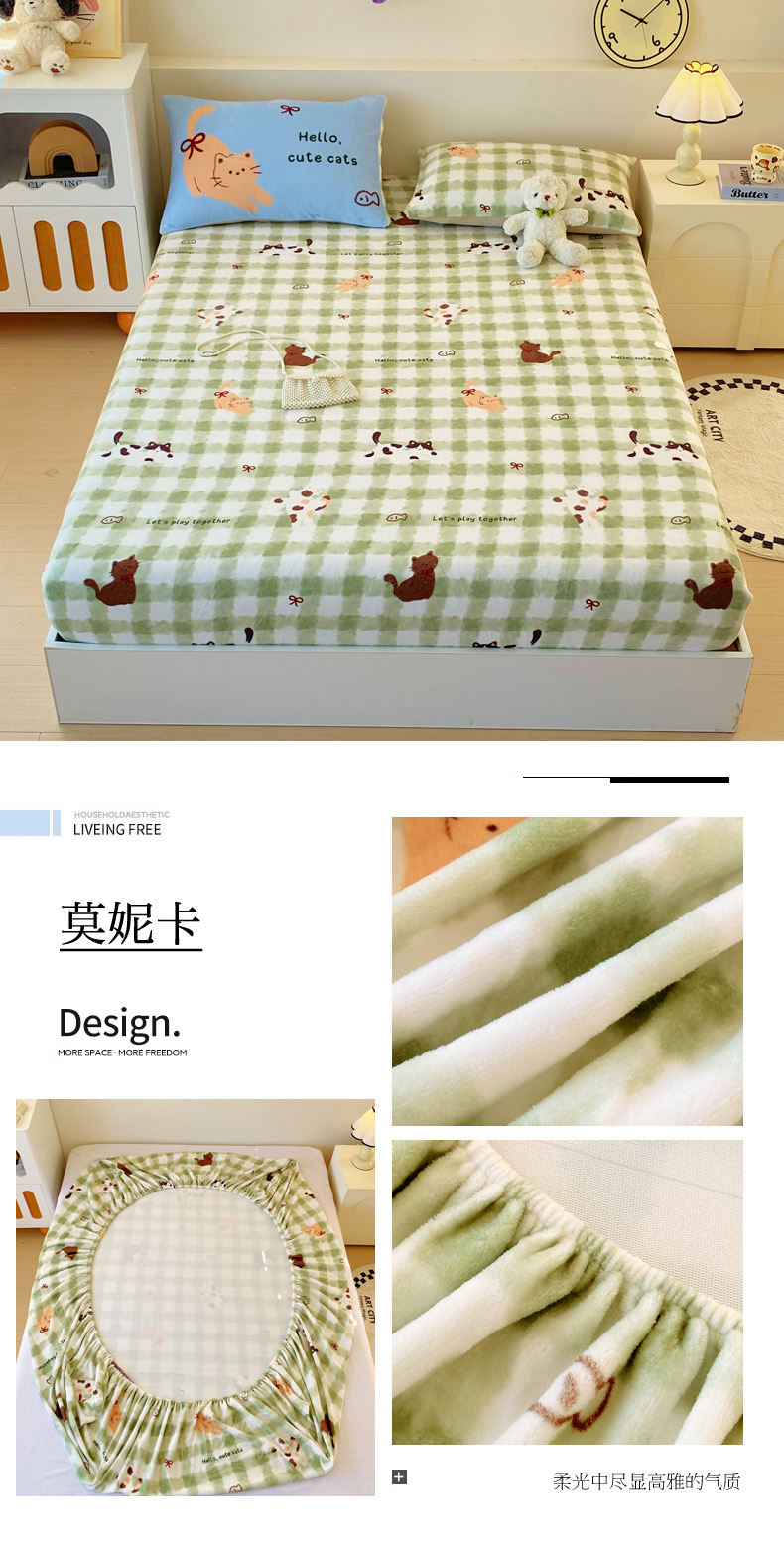 (总)葡萄家 2025年新款牛奶绒印花单床笠萌系卡通床笠款,豹纹猫,比熊,布丁猫,冬日狗,动物乐园,滑板熊猫,卡通乐园,拉蒙,腊肠狗,蓝格猫咪,猫千金红,莫妮卡,泡芙狗,俏皮狗,软萌猫蓝