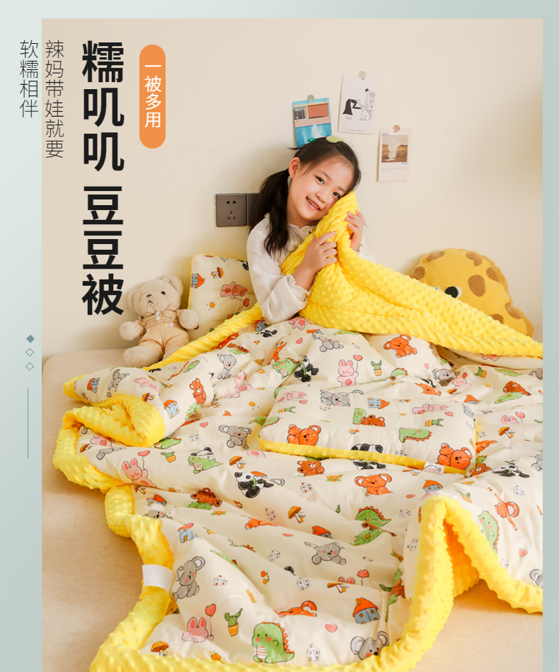 (总)十九色 2022新款夹棉豆豆被,动物世界,开心乐园,米奇,小公主,小恐龙,小苹果,小小交通队,游乐场,彩虹小马,草莓,滑板,糖果熊