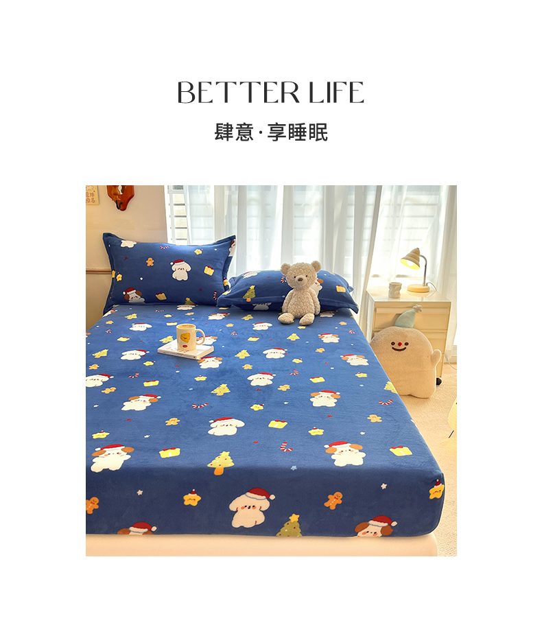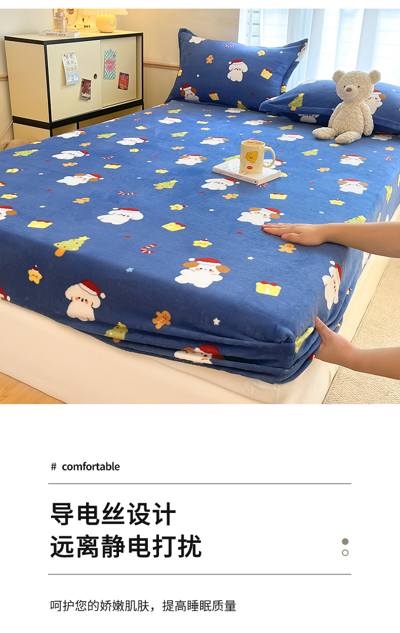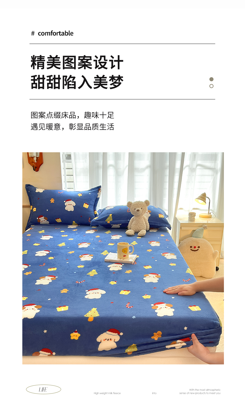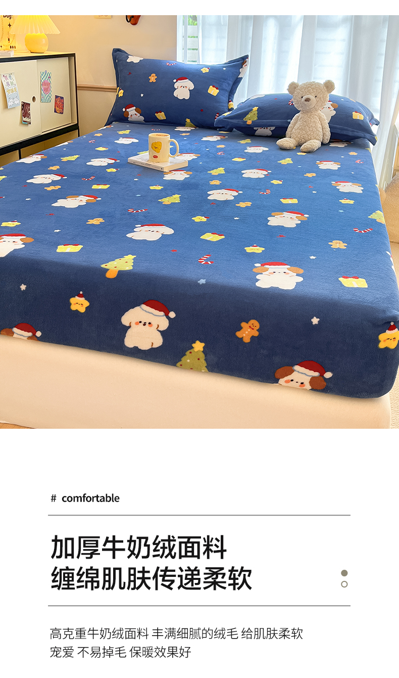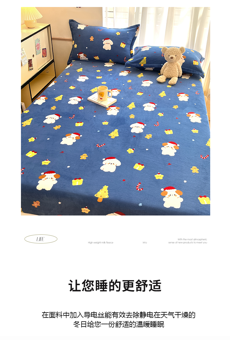 • 91家纺网 家纺一手货源 找家纺 寻米 2025新款高克重加厚保暖牛奶绒床笠-大床图 圣诞派对