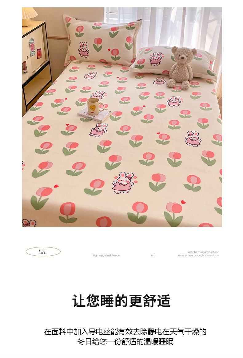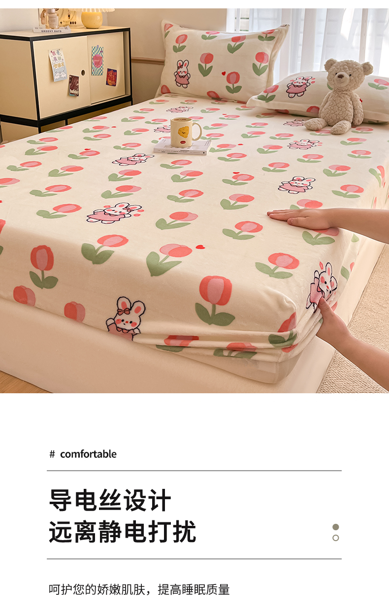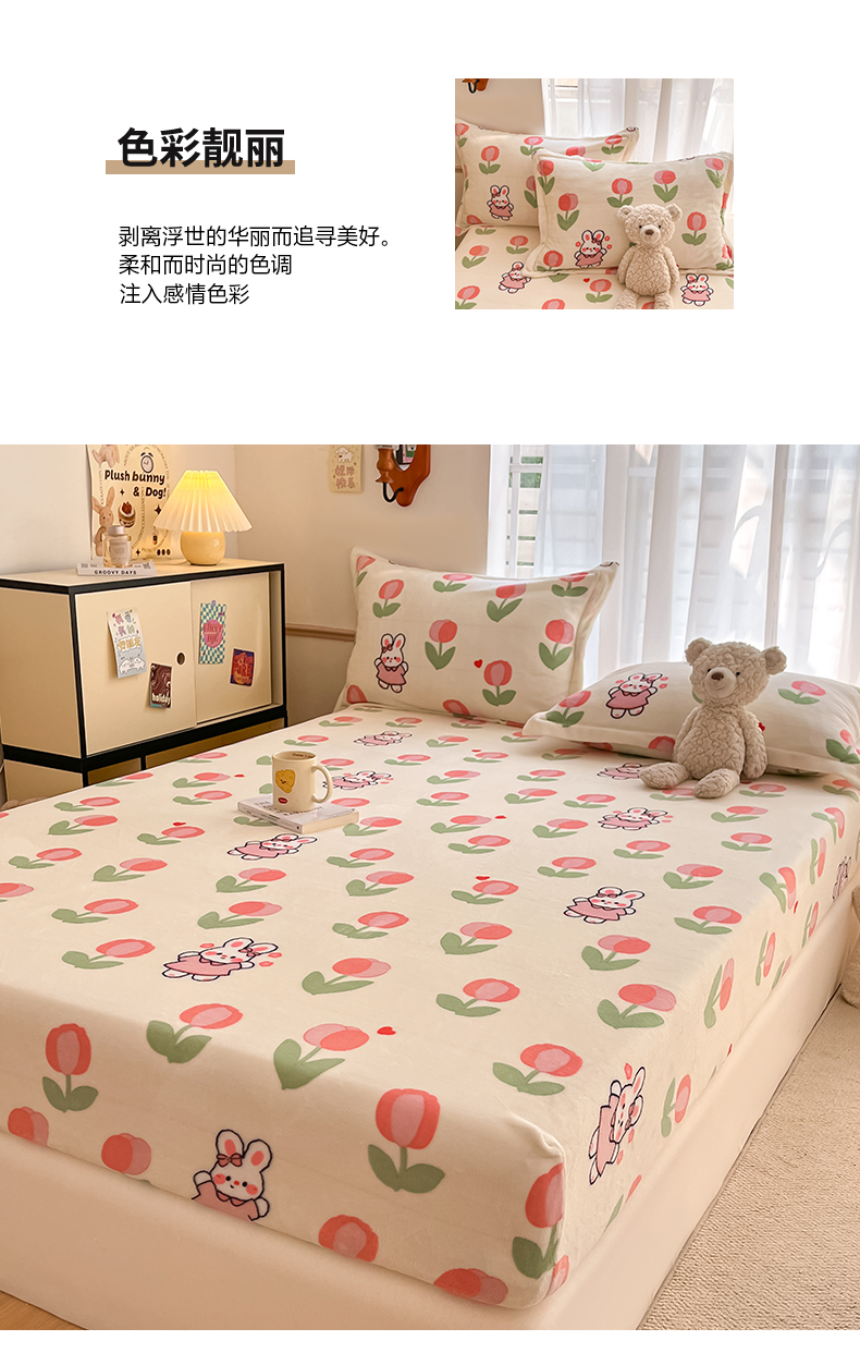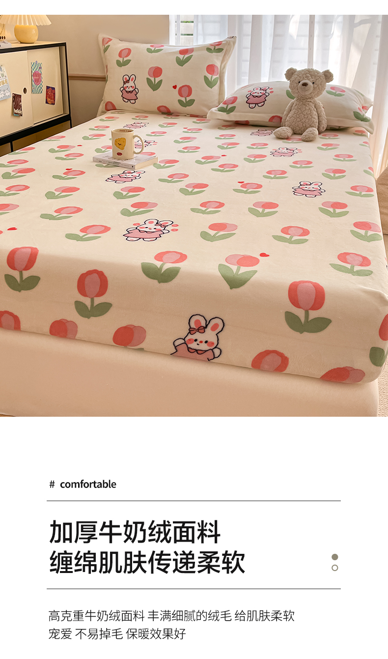 • 91家纺网 家纺一手货源 找家纺 寻米 2025新款高克重加厚保暖牛奶绒床笠-大床图 郁香小兔