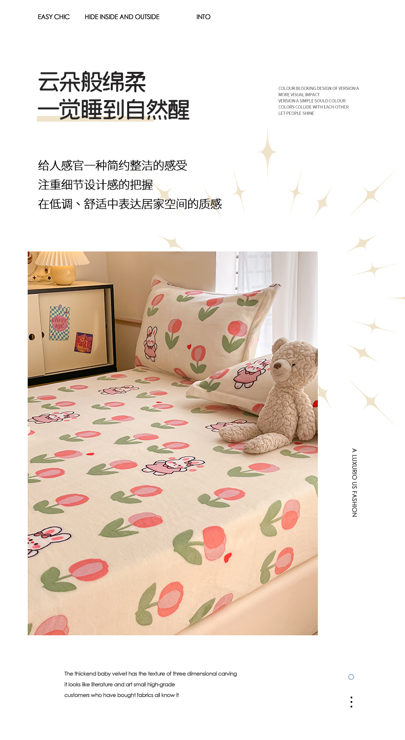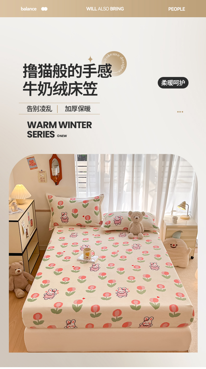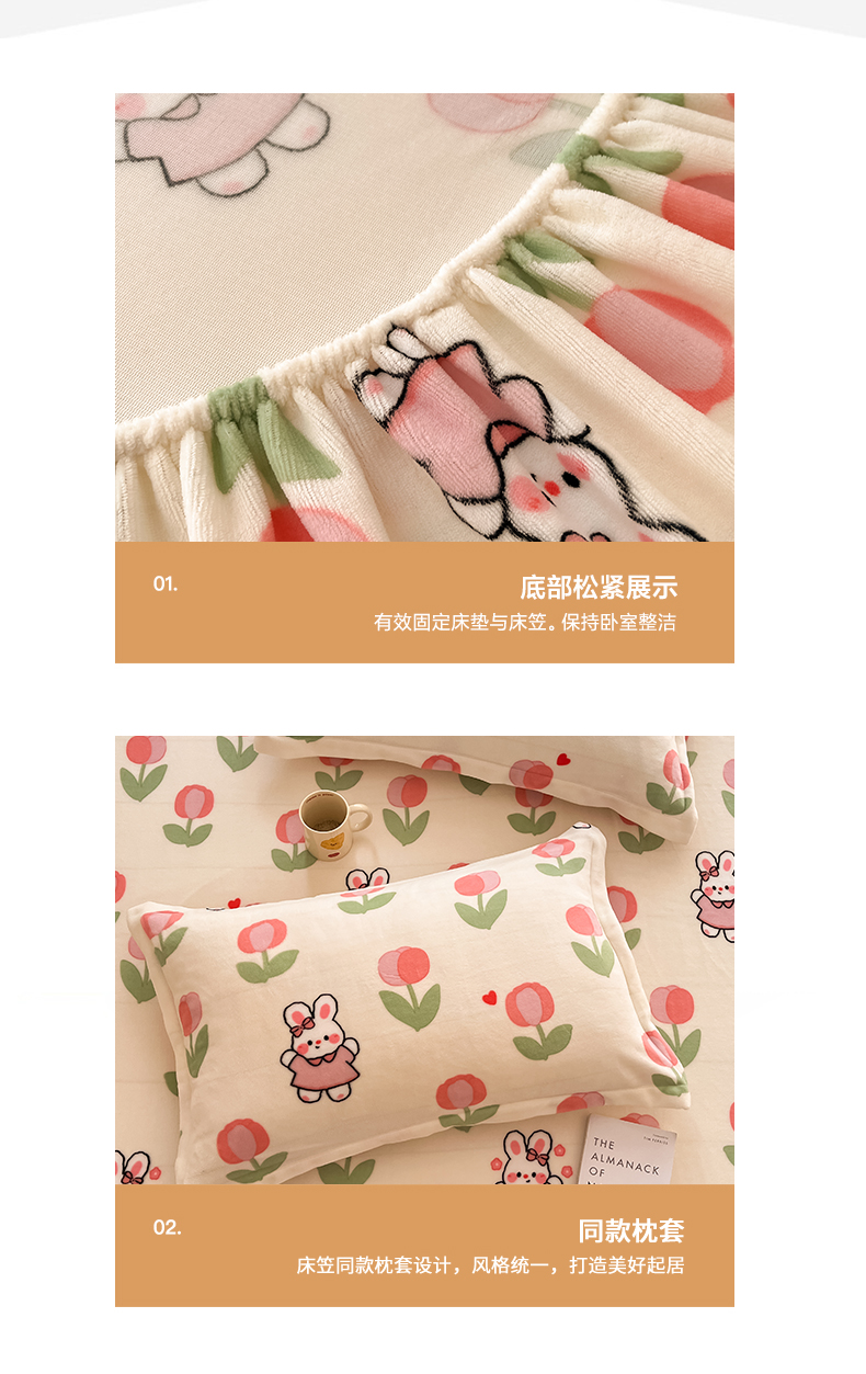 • 91家纺网 家纺一手货源 找家纺 寻米 2025新款高克重加厚保暖牛奶绒床笠-大床图 郁香小兔