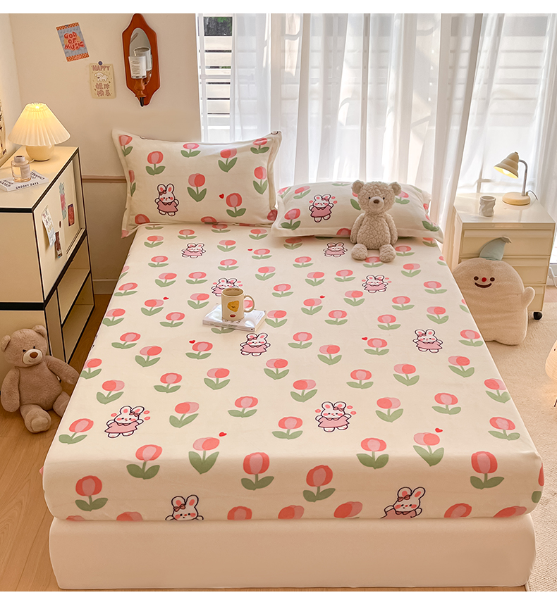 寻米 2025新款高克重加厚保暖牛奶绒床笠-大床图 郁香小兔