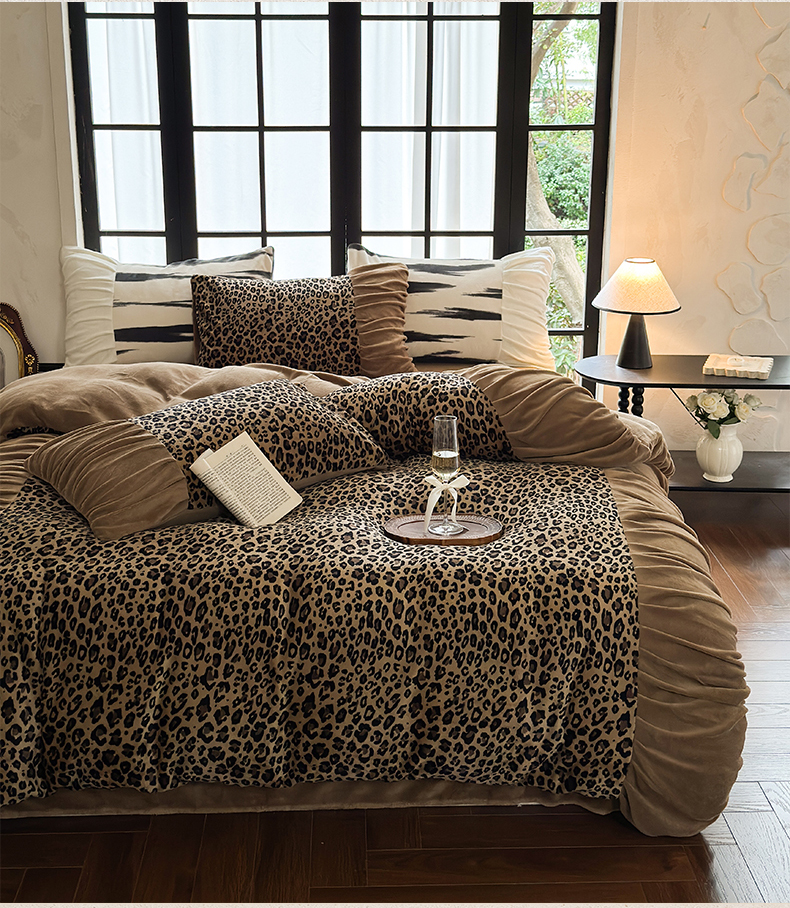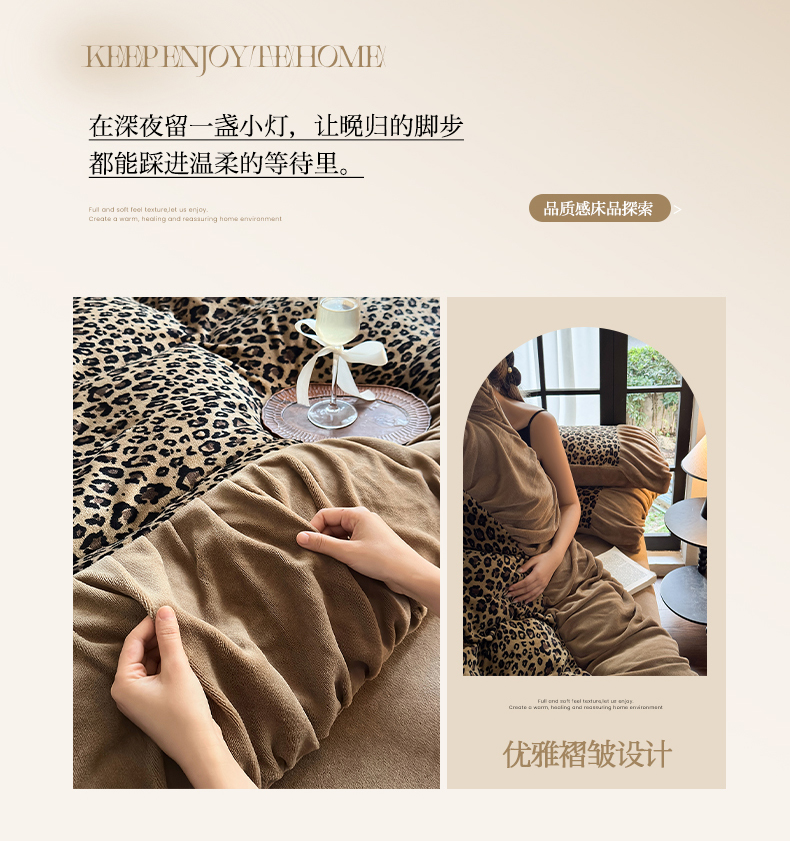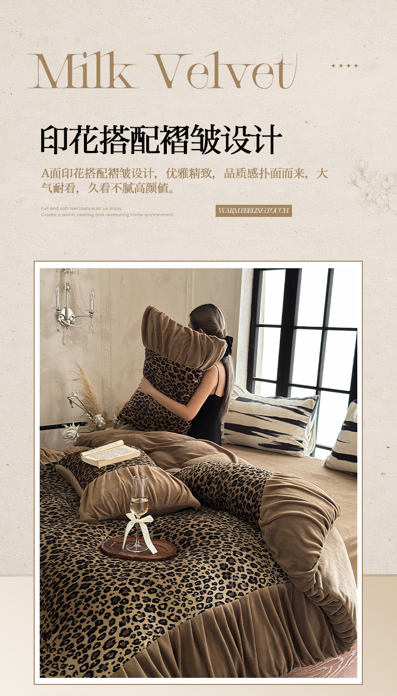 当前位置: 91家纺网 > 商品网购 > 床品套件 > 四件套 > 牛奶绒四件套 > 艾米家居 2025新款秋冬牛奶绒印花皱皱系列四件套提供买家秀 豹纹棕