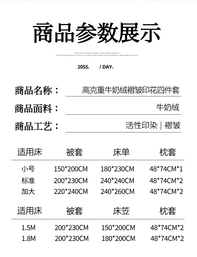 【床笠款】1.5四件套-被套200x230 | ¥105.00 |